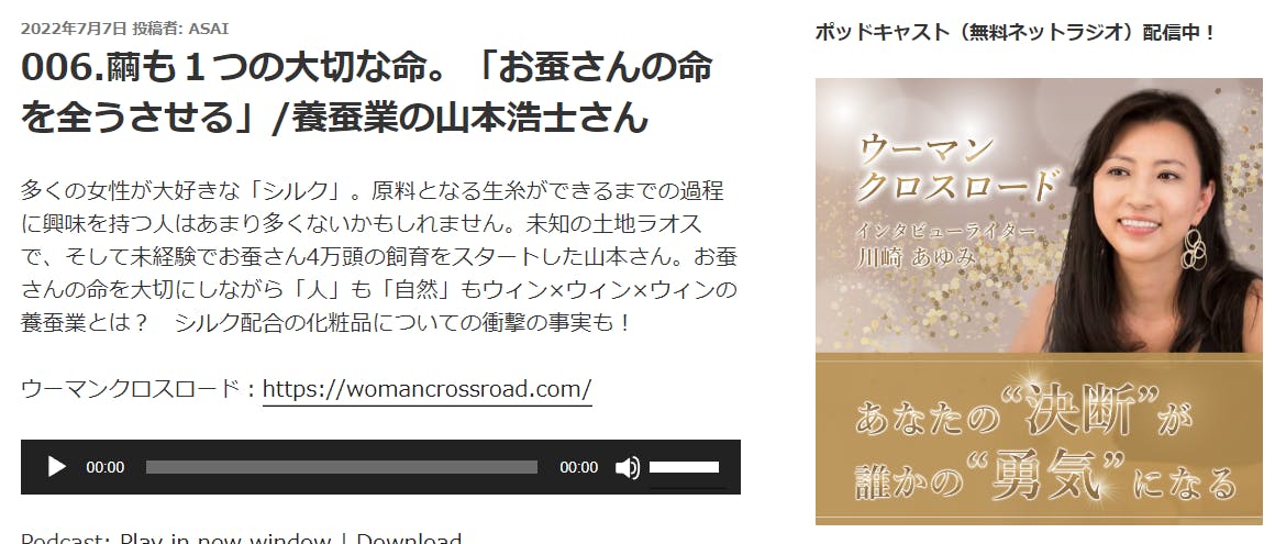 私たちの取り組みを応援したいという優しいインタビューライター川崎あゆみさんのおかげで、二回に渡りウーマンクロスロードに出演させていただきました。
