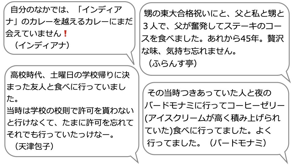 回答を見て気づいたのは、かつてあった、まちの名店を懐かしみ、復活を望んでいる人がとても多いということです。