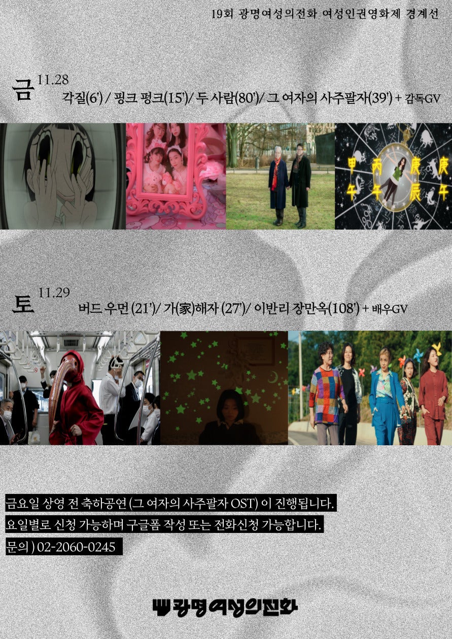 영화를 사랑하는 분들과 여성폭력추방주간을 의미있게 보내고 싶으신 분들의 많은 참여 바랍니다:)