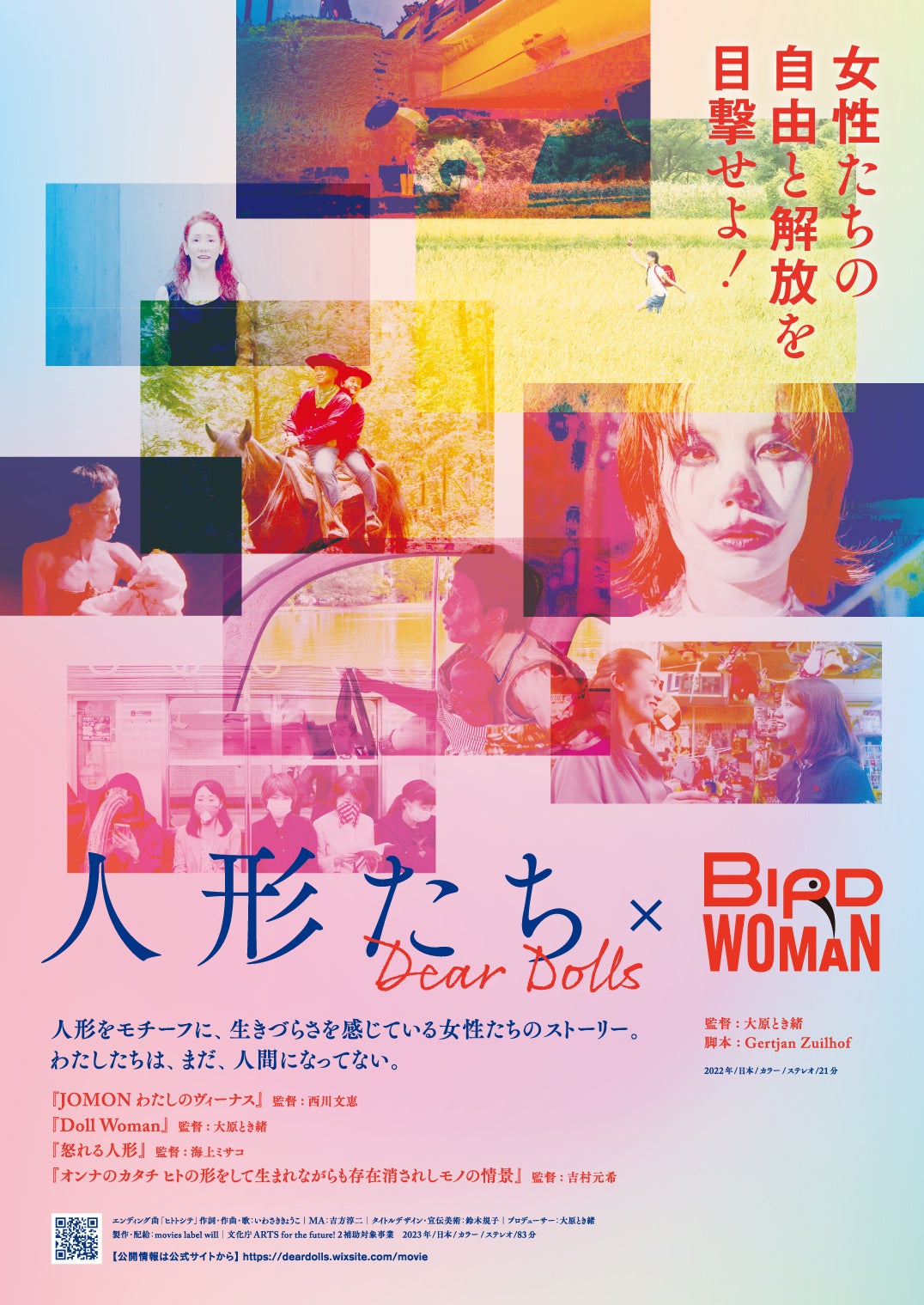 こんばんは!大原とき緒です!おかげさまで劇場公開が決まりました。『Bird Woman』は、4人の女性監督による長編オムニバス映画『人形たち~Dear Dolls』と一緒に東京と大阪で公開されます!オムニバス映画の中の一篇『Doll Woman』は大原とき緒と脚本のヘルチャンが再タッグを組んだアーバン・フェアエリーテールです。●『人形たち~Dear Dolls』×『Bird Woman』公式サイト https://deardolls.wixsite.com/movie●『人形たち』公式Facebook https://www.facebook.com/deardolls2023●劇場公開予告編本日、情報解禁日ということで、ありがたいことに、映画ナタリー様、Yahoo!NEWS様、映画情報ドットコム様、シネマジカル様、1st Generation様、Onigiri Media様に情報を掲載して頂きました。昨年末の劇場との打合せから今日の解禁日まで時間の無い中、オムニバス映画の3人の監督には、本当に助けていただきました。この4人でなければ、ここまでたどり着けなかったと感謝しています。ありがとうございます。そして、いつもダメダメな私と『Bird Woman』を応援してくださっている皆さまへ、本当にありがとうございますとお伝えいたします。東京は寒いけれど、皆さまが少しでも温かい場所にいることを願っております。美しい宣伝デザインは『Bird Woman』『人形たち』共に鈴木規子さんです!どうぞ引き続き、応援いただけますよう、お願いいたします!・・・・・・・・・・・・・・・・・・・・・・・・・・・・・2023年4月8日(土)-4月14日(金)池袋シネマ・ロサにて、1 週間限定レイトショーシネマ・ロサ公式HP https://www.cinemarosa.net 2023年4月15日(土)-4月21日(金)シアターセブンにて、1 週間ロードショーシアターセブン公式HP http://www.theater-seven.com/ ・・・・・・・・・・・・・・・・・・・・・・・・・・・・・○シネマ・ロサでのチケット情報〇 前売券:1,400 円 (池袋シネマ・ロサ劇場窓口にて2月9日より販売。オリジナルポストカード付)当⽇⼀般:1,800 円/高校生以下:1,000円/水曜サービスデー:1,100円リピーター割引:1,100 円(『人形たち~Dear Dolls×Bird Woman』半券提⽰) ・・・・・・・・・・・・・・・・・・・・・・・・・・・・・ 長編オムニバス映画『人形たち~Dear Dolls』 ★『人形たち~Dear Dolls』83分/カラー 人形をモチーフに、生きづらさを感じている女性たちのストーリー。わたしたちは、まだ、人間になってない。 監督-「怒れる人形」海上ミサコ -「Doll Woman」大原とき緒 -「JUMON わたしのヴィーナス」西川文恵 -「オンナのカタチ ヒトの形をして生まれながらも存在消されしモノの情景」吉村元希 タイトルデザイン:鈴木規子/MA:吉方淳二 エンディング曲「ヒトトシテ」作詞・作曲・歌:いわさききょうこ 文化庁ARTS for the future! 2補助対象事業 プロデューサー:大原とき緒 製作:movies label will ・・・・・・・・・・・・・・・・・・・・・・・・・・・・・ 『Bird Woman』/2022年/21分/カラー/ステレオ 監督・主演:大原とき緒 脚本:ヘルチャン・ツィホッフ/撮影監督:斎藤文 プチョン国際ファンタスティック映画祭(2022年7月) インターナショナルコンペティション部門選出作品 【公式Facebook】https://www.facebook.com/birdwoman.zero 【公式Twitter】https://twitter.com/ShortmovieBird1 【ティザー】https://youtu.be/1nFsd4Jvjak