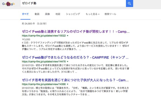 他にもゼロイチ塾をやっているのかと、グーグル検索したところ…