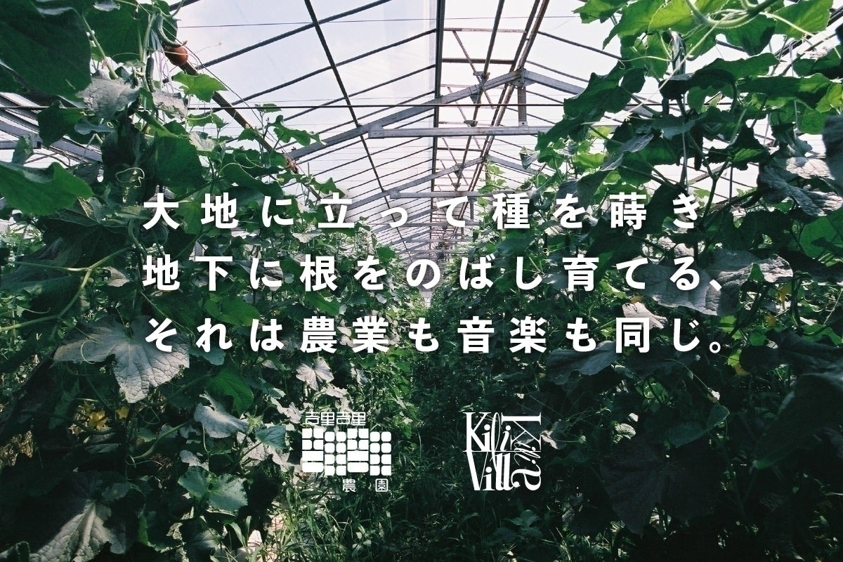 吉里吉里農園はレーベルのプロデューサー安孫子が2020年の春に埼玉県上里町できゅうり農園としてスタート。秋から冬にかけてはネギ、冬から春にかけてはサニーレタスの栽培もはじめています。