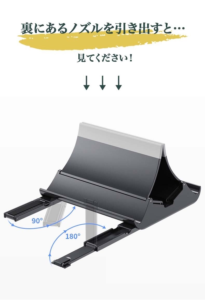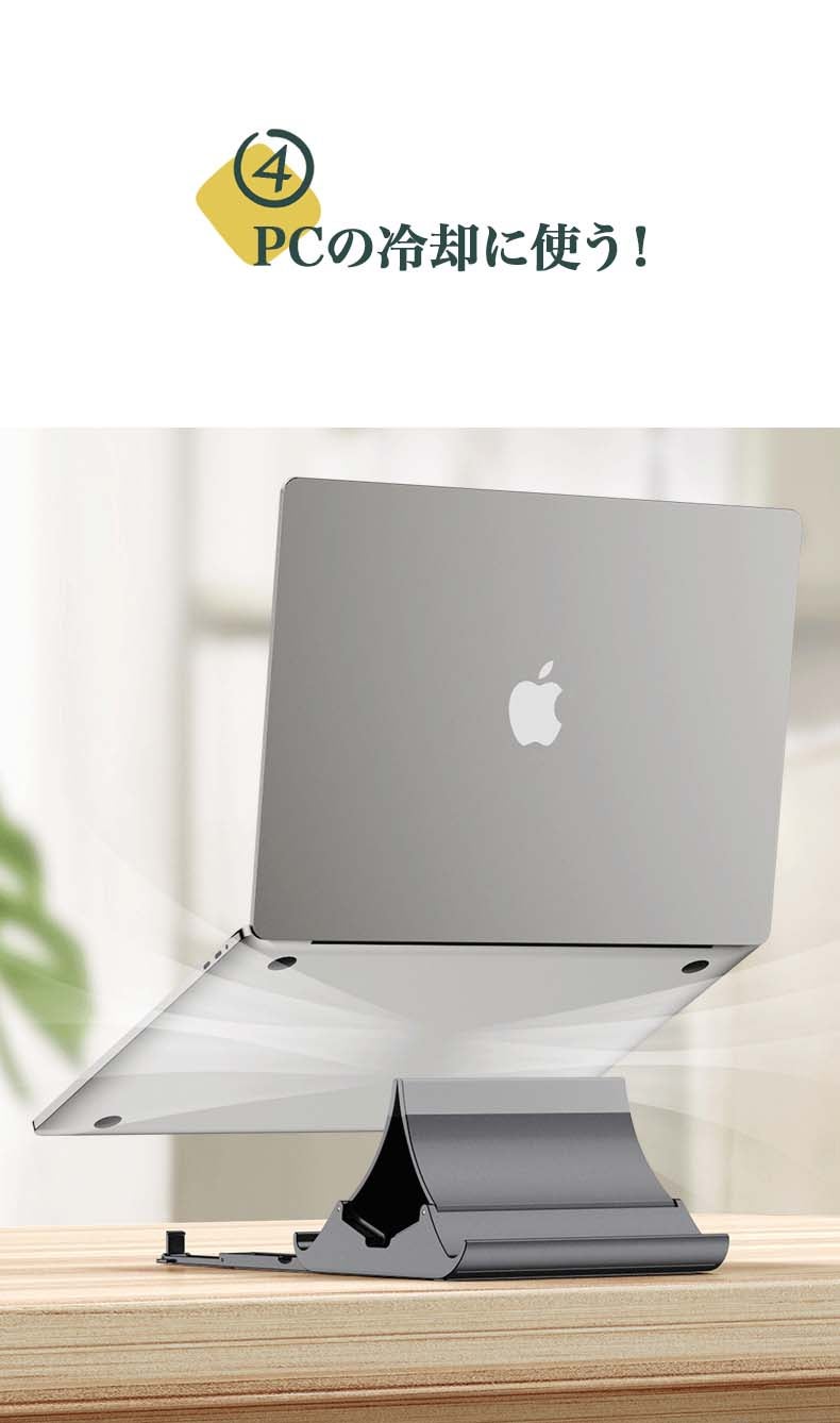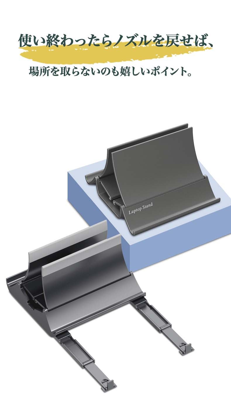 両側のスタンドに設置出来て、パソコンの裏面を空気に当てることでパソコンの冷却にも役立つのです。