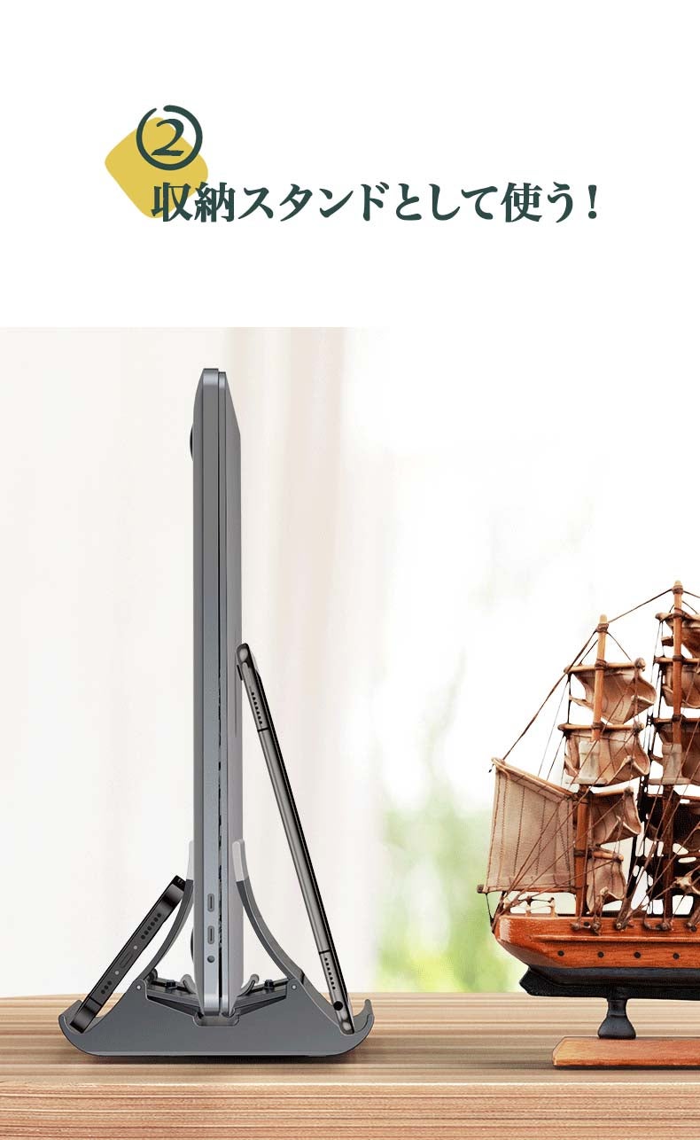 作業効率を向上させるPCスタンドでありながら、デスク周りもすっきりさせることができる、4in1のスマートなマルチスタンドです。