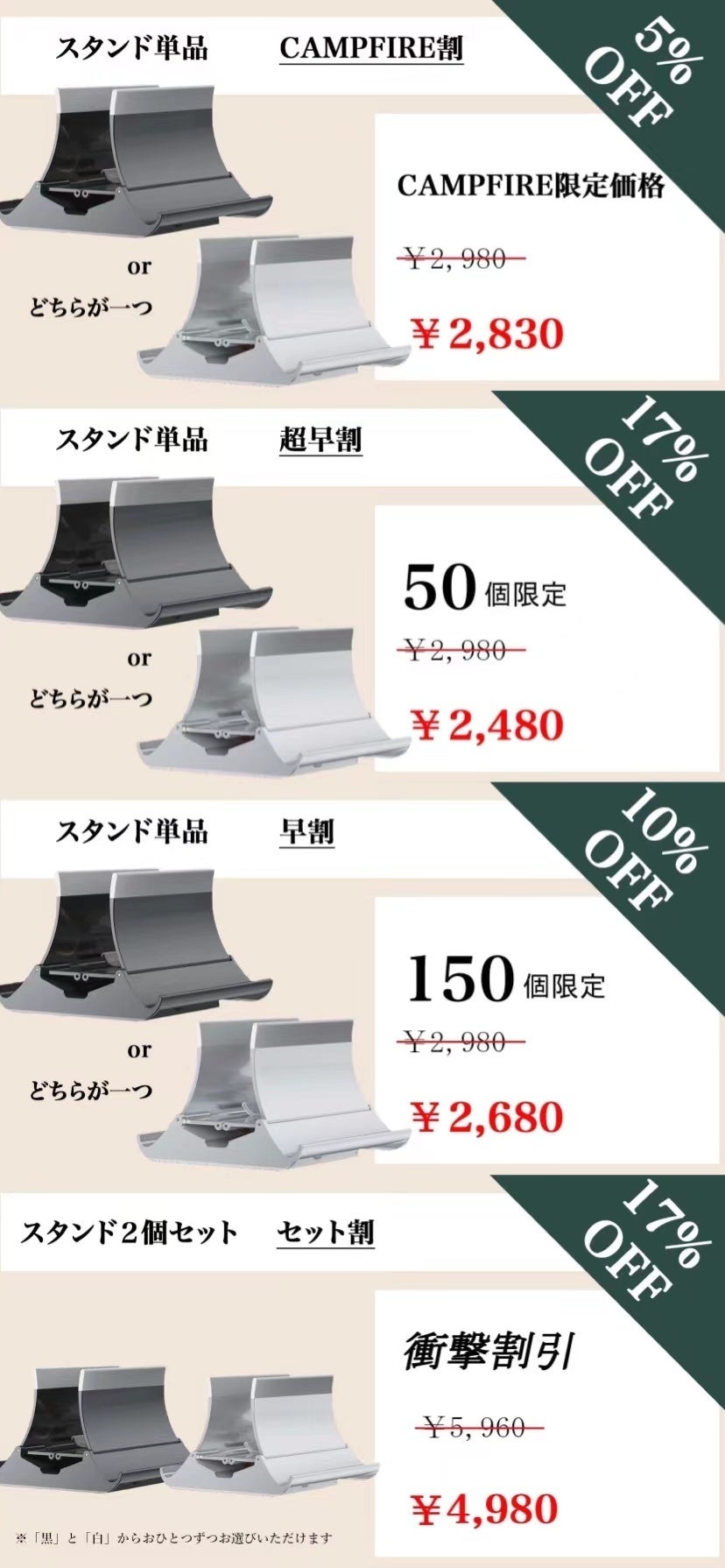2022/06/09 15:00本日、4つの機能がひとつになった「マルチスタンド」を公開致しました。プロジェクトページをご覧いただき、誠にありがとうございます。「マルチスタンド」の主な特徴■5秒でPCスタンドから収納スタンドへ■画期的なキャッチ機能で抜群の安定性を実現■滑り止めでPCも安定■ワークスペースをさせるデザイン性でテレワーク時代にぴったり 引き続き、プロジェクトを暖かく見守って下さると幸いです。目標金額達成に向けて頑張りますので、応援拡散の程よろしくお願い致します。 もっと見る