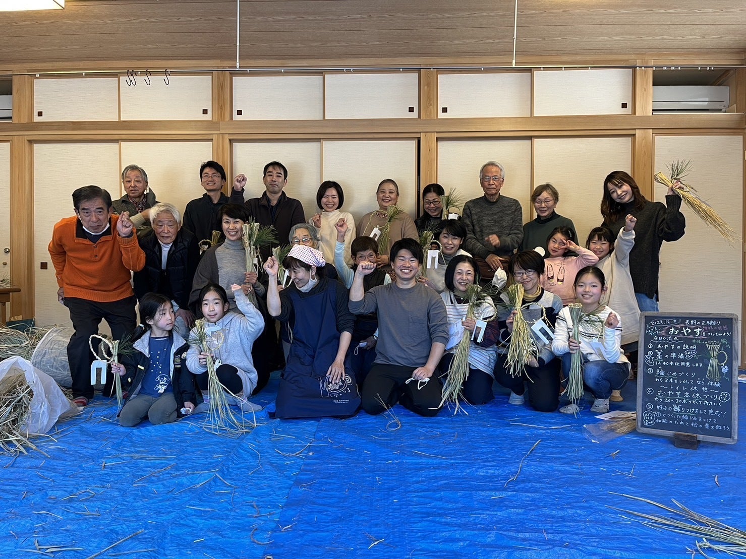 「おやす」とは稲わらを使った長野のお正月飾りのことなのです。たまたまご縁があり、長野出身の大学生の方が講師として参加してくださいました!