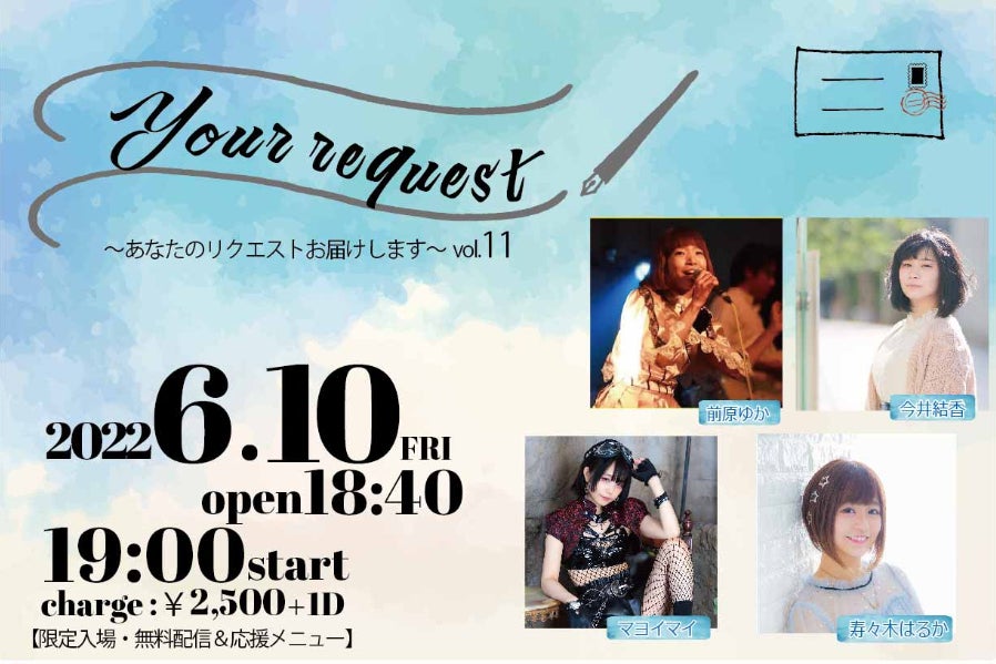 ☆リクエスト曲をあなたのためだけに歌います権! ¥10,000【各限定1名!】