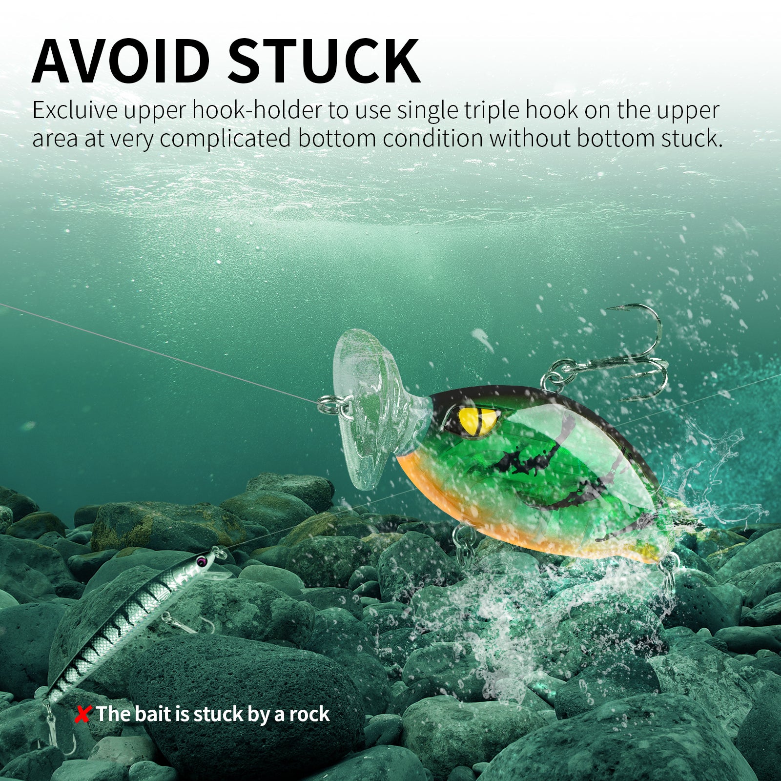 上昇の為に特化したリップにより水中での高い上昇角度を作り出し、障害物からルアーを保護し、狙いたいポイントを確実にサーチ出来ます。