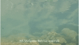 ⑧リトリーブを止めると、潜んでいる捕食者を狩るためにより深くゆっくりと沈み込みます。