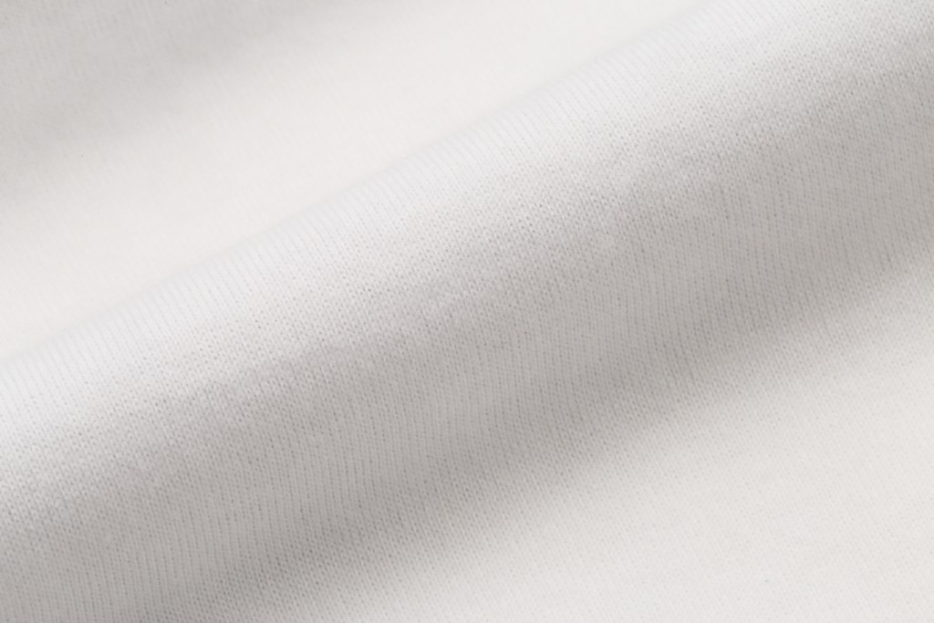 生地はオーガニックコットン100%、40番双糸の天竺を使用しており、透けすぎず厚すぎないのでインナーはもちろんアウターとして一枚でも着用できる仕上がりとなっております。