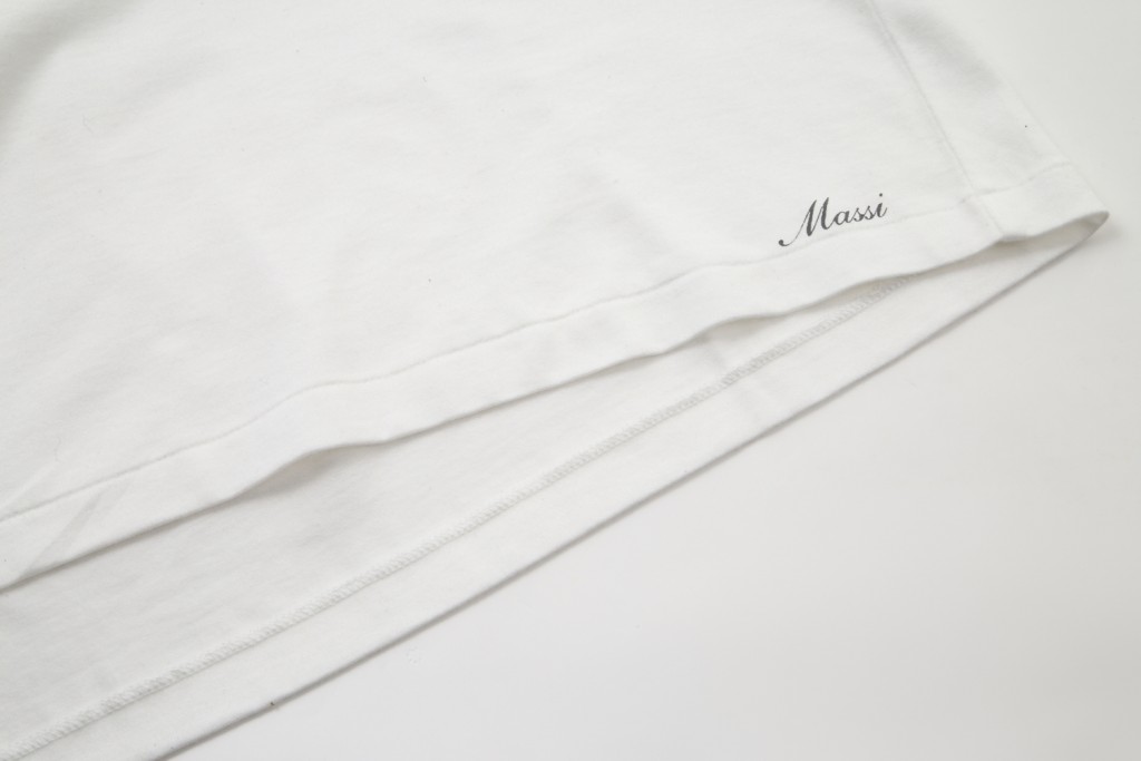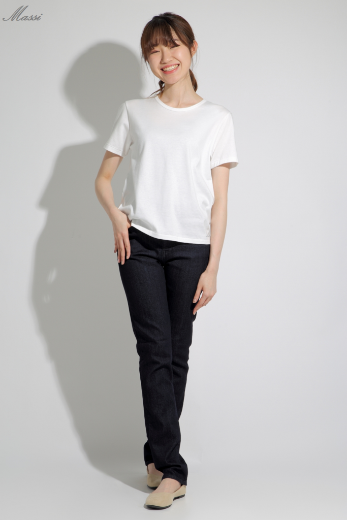 Massi のTシャツは、地球にも人にもやさしいオーガニックコットン100%のTシャツ。オーガニックコットンの柔らかな着心地と肌触りを重視した生地感となっています。様々な体系の方でも着やすいよう身頃に程よいゆとりを持たせたシルエットとなります。