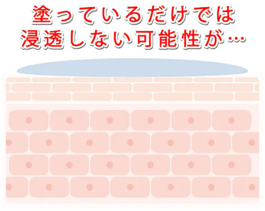 なので、表面に塗るだけでは、実はお肌の奥の角質層まで届いていない可能性があるんです。