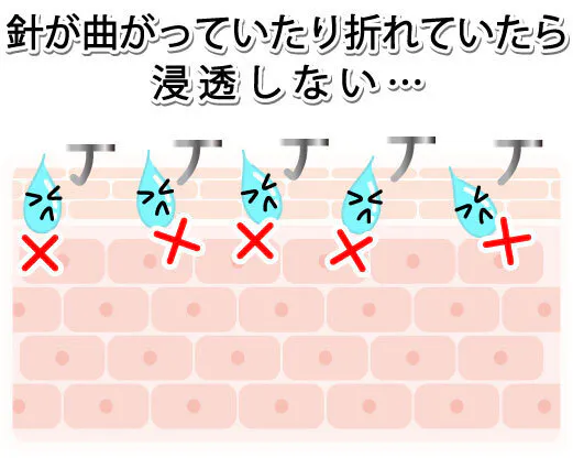 しっかり「ピン」っと針先が全部直立していて、しっかりお肌に刺さるんです。