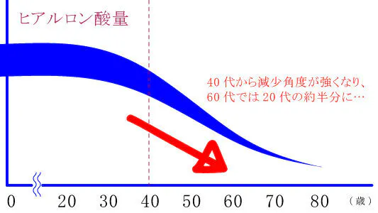 しかし、ヒアルロン酸の量は年齢とともに減少する性質があります。