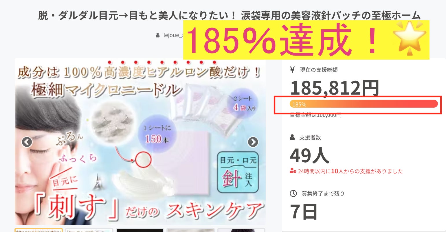 目標金額の185%達成まで、越させていただきました。