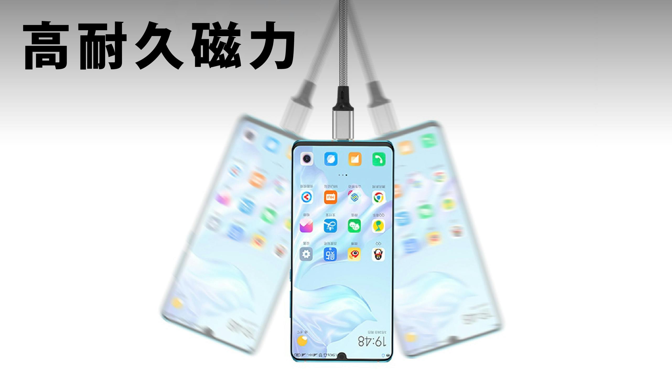 Lightning、Micro-USB、Type-Cのマグネット端子でご使用のあらゆる端末の充電を可能に。