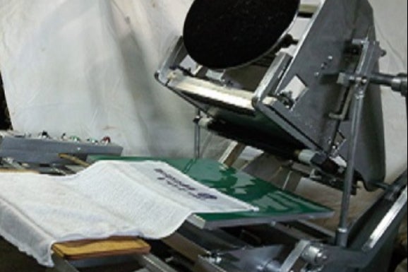 凸版印刷機と縦引き式スクリ-ン印刷機と共に、タオルの名入れが、効率よく、使いやすく、きれいに、印刷ができるように、横引き式のタオル名入れ用スクリ-ン印刷機を、製作致します。