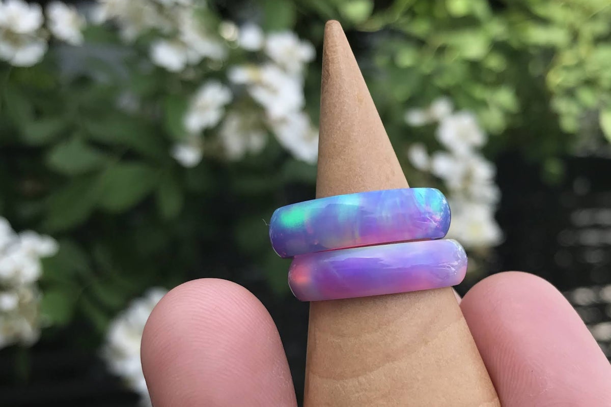 この度のプロジェクトでは「ハイブリッドオパール」の最も新しいカラーバリエーションであるオーロラユニコーンカラー2色から削り出し制作するハンドメイド指輪を商品化したいと考えております。