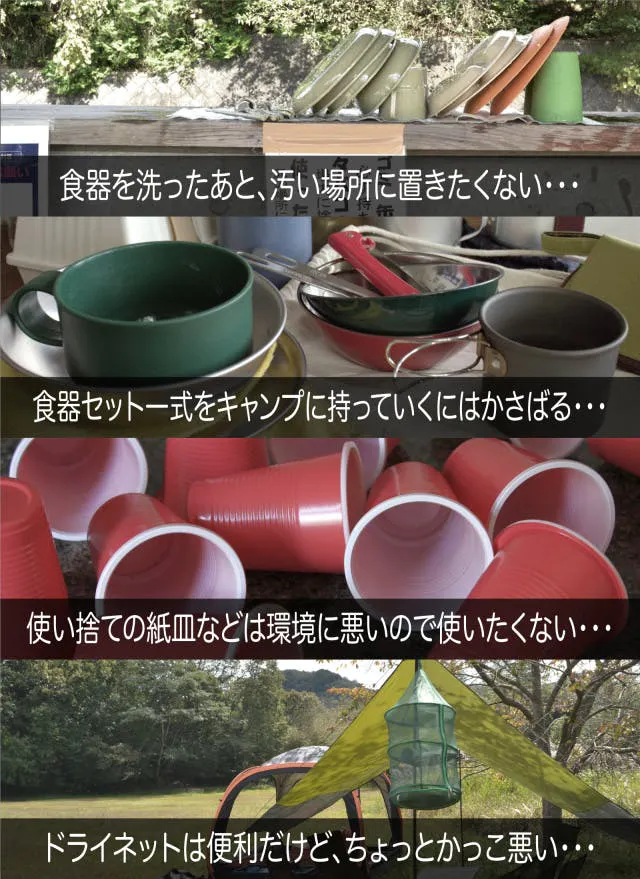 ●【衛生的】吊して干せる、衛生的なキャンピングテーブルウェア