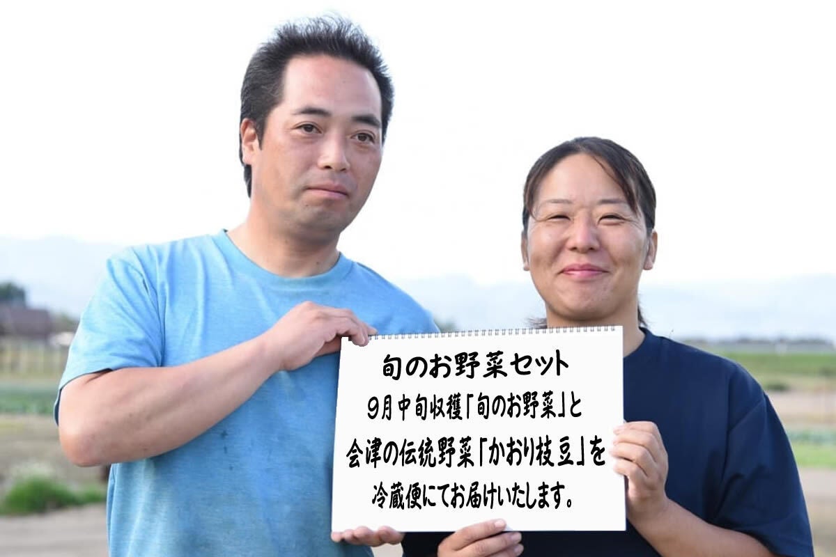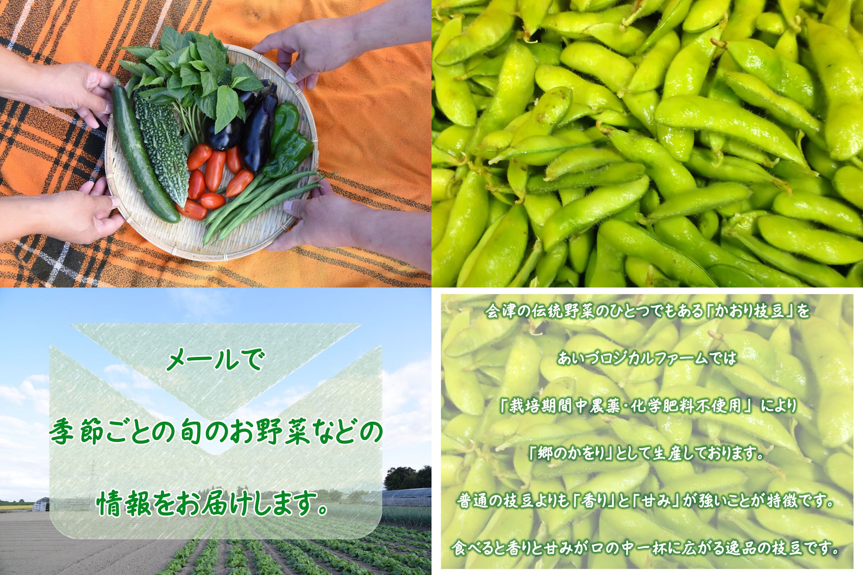 ・9月中旬に収穫する「旬のお野菜」にプラスして会津の伝統野菜のひとつでもある「かおり枝豆」を冷蔵便にてお届けいたします。