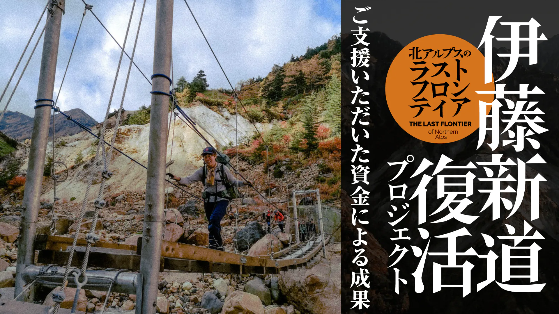 また、来年は峠の茶屋への避難小屋の建築、第一吊り橋上流のスラブへの桟道の設置等、更に資金が必要なため、再度クラウドファンディングを行います。重ねてのお願いで心苦しいですが、なるべく多くの方に通行していただくため、引き続きのご支援よろしくお願いいたします。