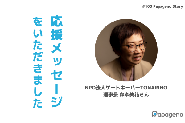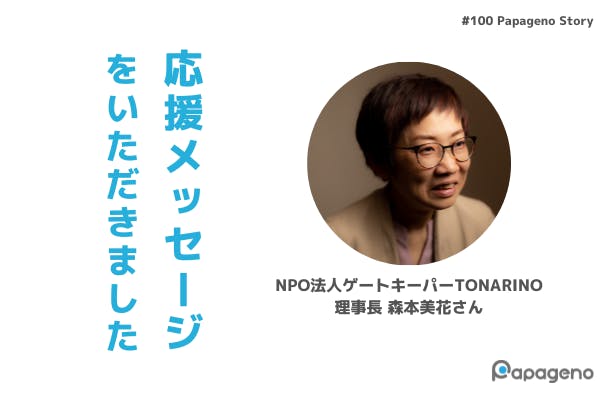 NPO法人ゲートキーパーTONARINO 理事長 森本美花さんから応援のメッセージをいただきましたので、ご紹介します。