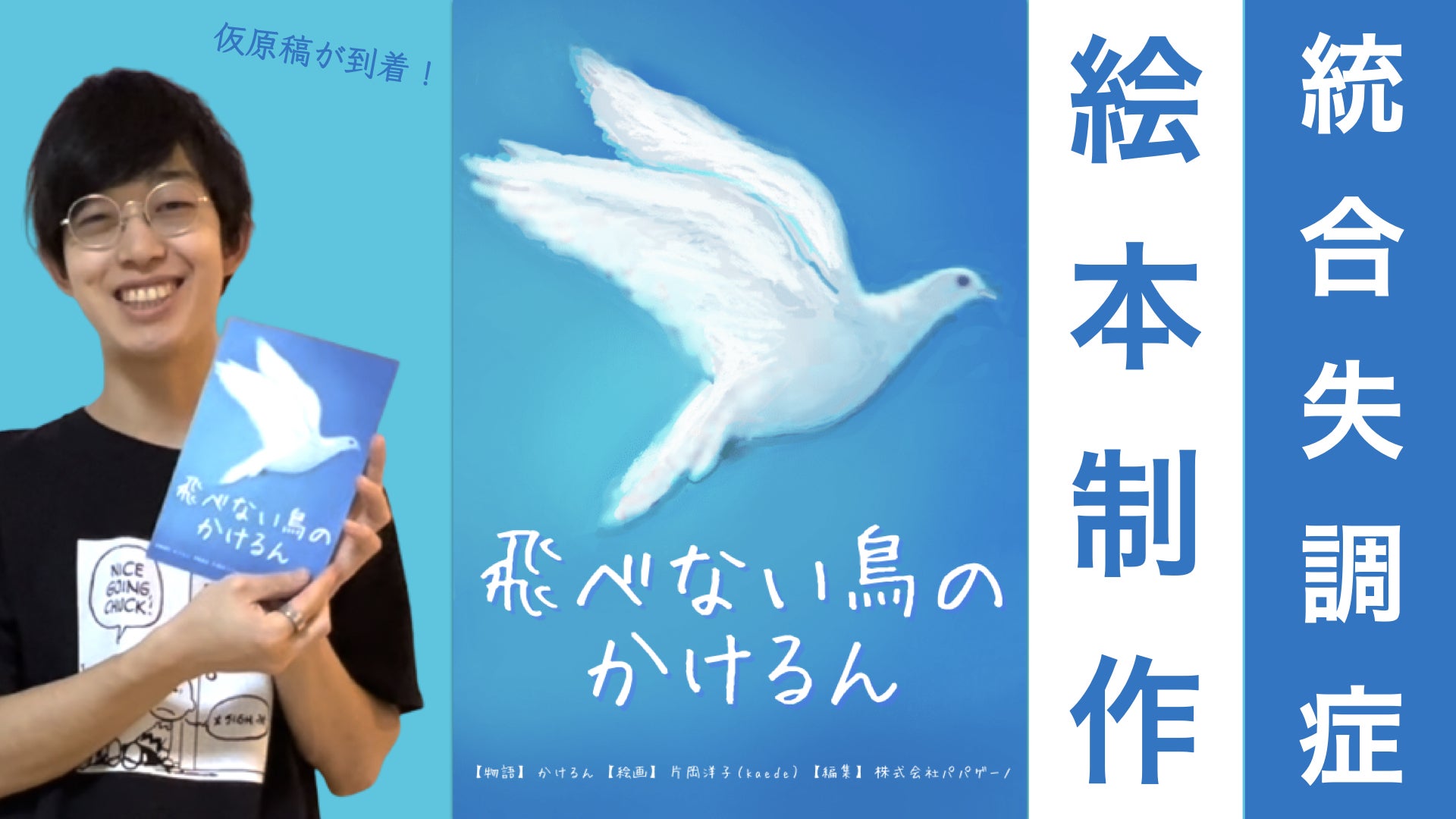 こんにちは。株式会社パパゲーノ代表の田中康雅です。昨日、試し刷りした絵本が無事完成して届きました!『飛べない鳥のかけるん』の仮原稿が無事完成!【統合失調症当事者の体験を絵本で届ける】https://www.youtube.com/watch?v=2D_XkoLv15g先日、ご支援いただいた皆様へ絵本のデジタルデータを先行配信させていただきました。早速読んでいただいた方から、「読んでいて涙が出た」「感動した」という嬉しい感想をいただいております。改めて、かけるんさん、片岡洋子さんの強い想いを形にすることができてよかったなと感じております。皆様のもとへ郵送でお届けできるよう、追加の印刷や郵送を7月中に進めて参りますので、引き続きよろしくお願いいたします。株式会社パパゲーノ 代表取締役田中康雅