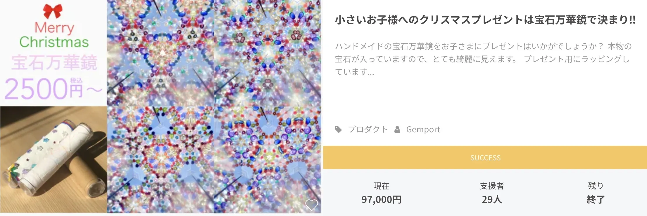 目標達成後は宝石・万華鏡の仕入と送料のために活用させて頂きます。