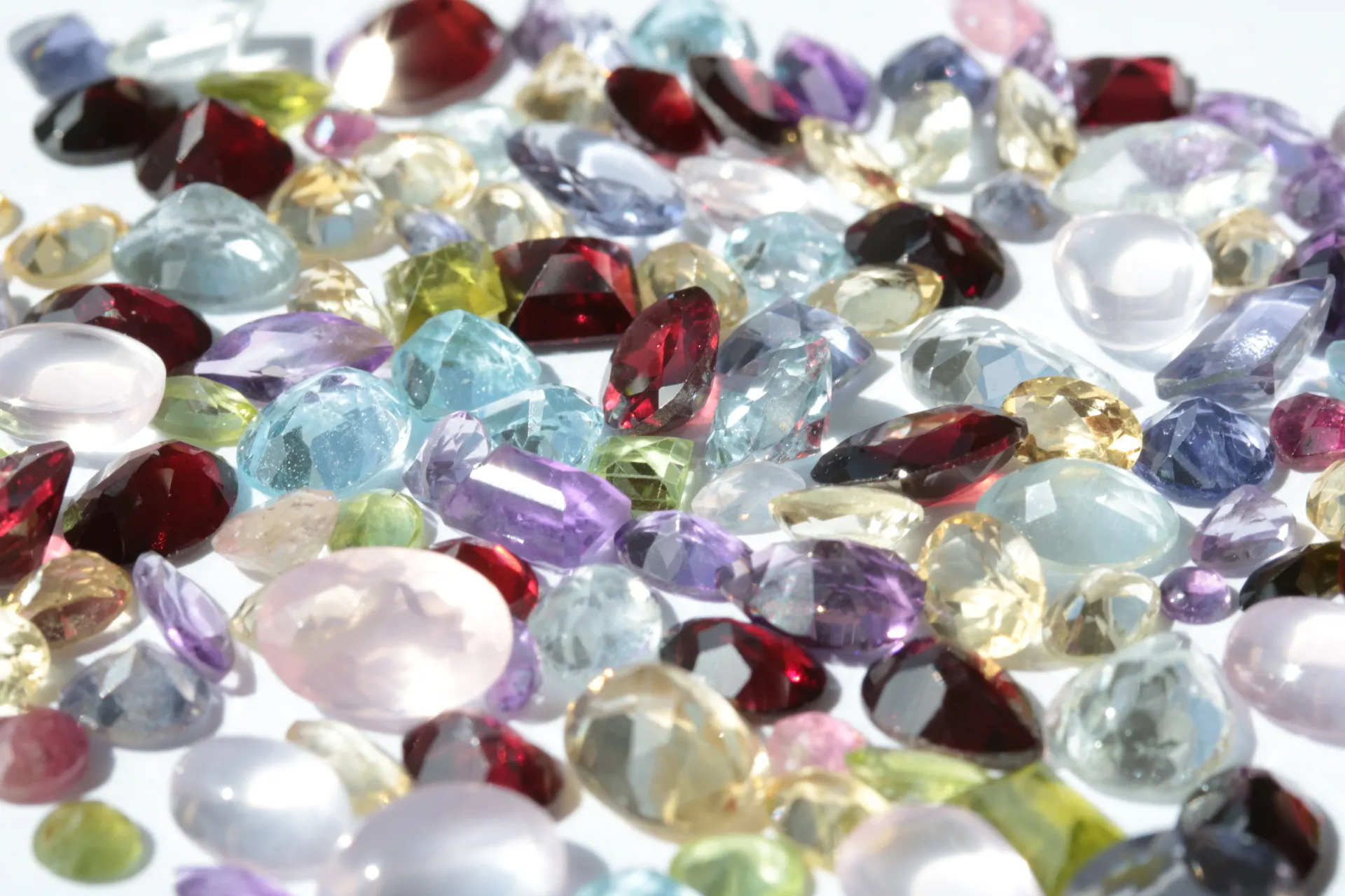 アイオライト・アクアマリン・ブルートパーズ・ホワイトトパーズ・トルマリン・ガーネット・アメジスト・シトリン・ペリドット・オパール・クオーツ・翡翠(ヒスイ)など