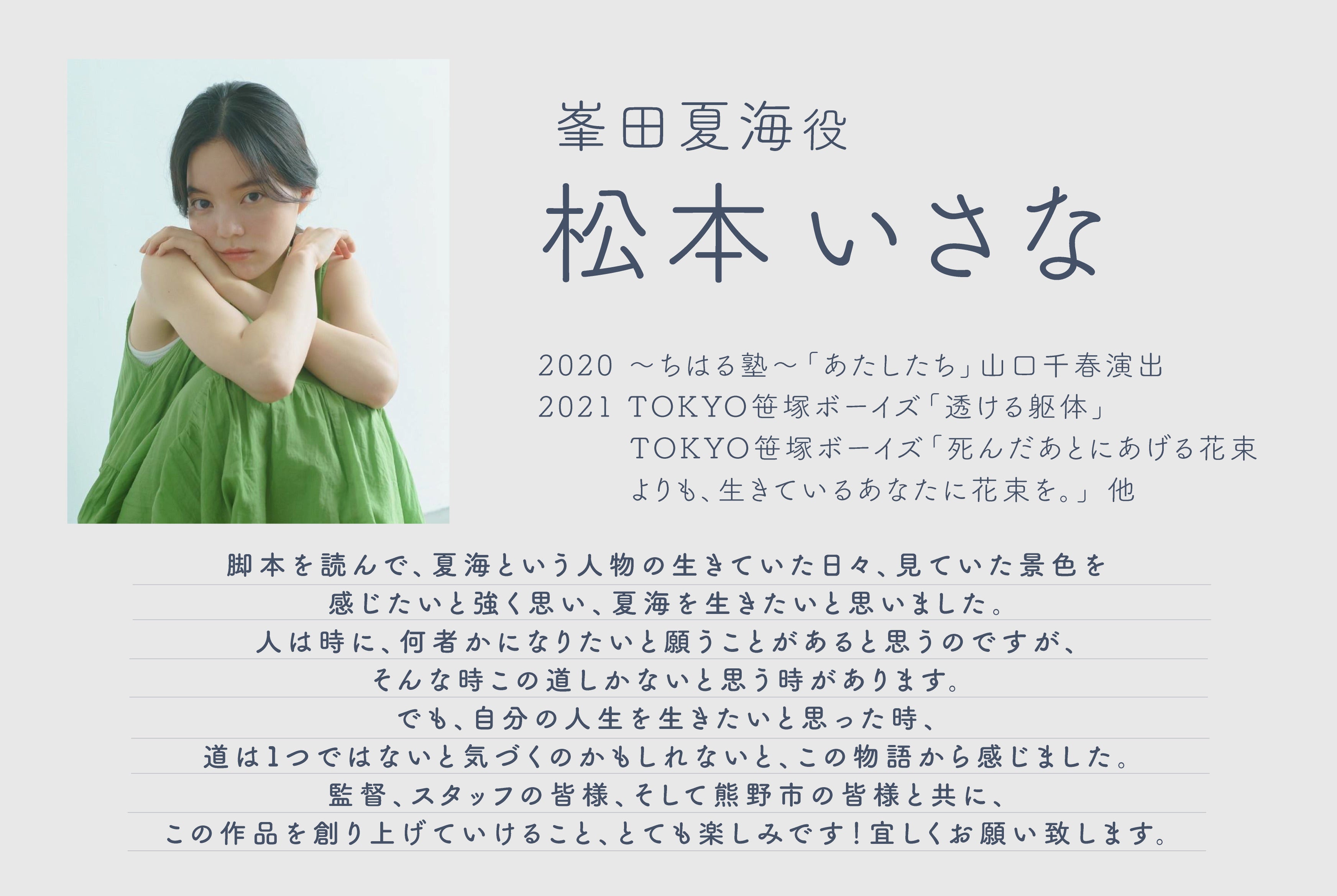 監督の杵村と脚本の千葉、たった二人から始まったこのプロジェクトは、スタッフ25人の想いを乗せ企画が動き出し、そこにキャストの想い、熊野市の方々の想いを乗せてここまで成長してきました。