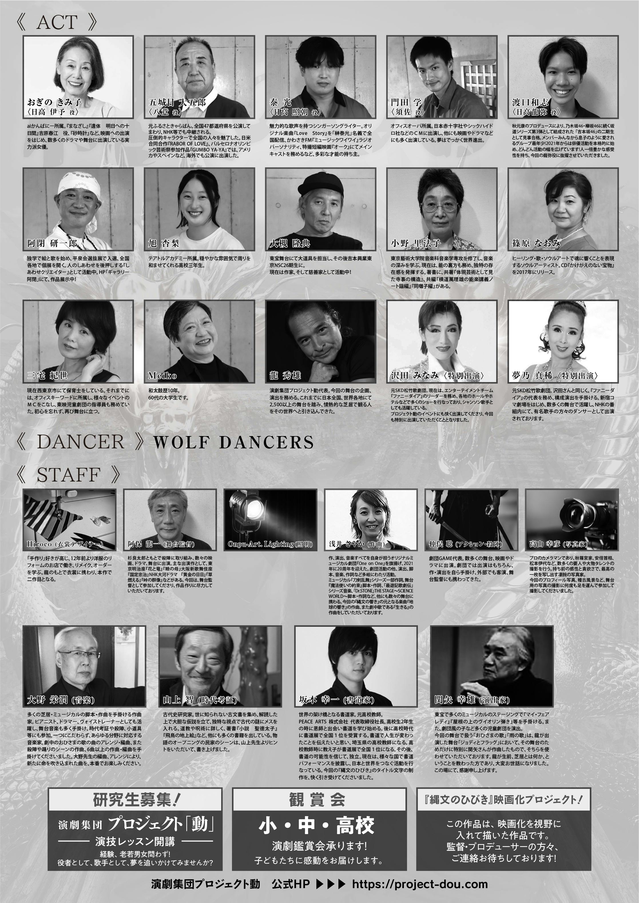 私たちは、このままではいけないと感じ、再び演劇集団プロジェクト動としての活動を再始動し、この『縄文の響き』を上演することを計画しました。地域の方々にも参加していただき、現在徐々に舞台づくりが進んできています。