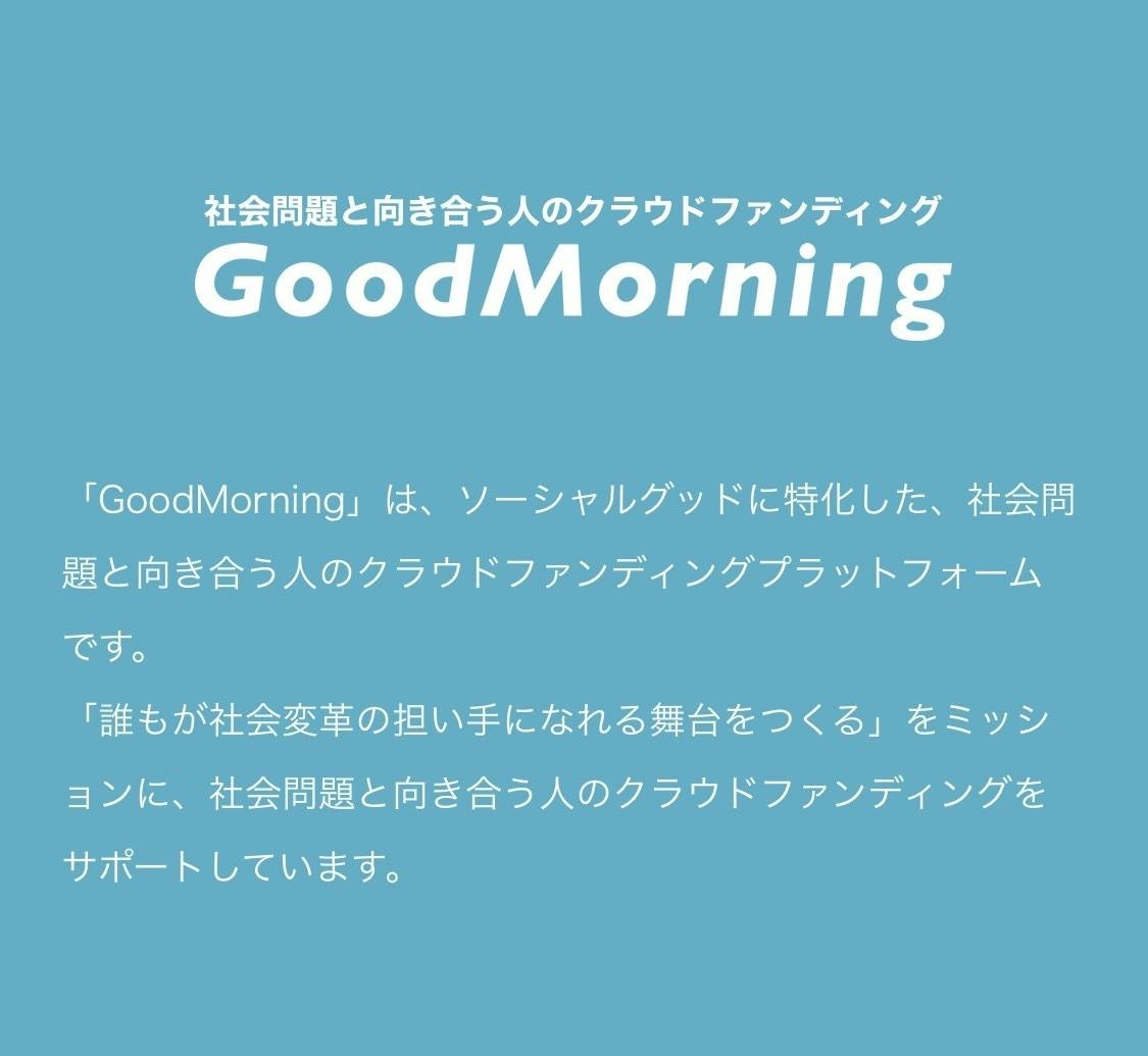 本プロジェクトは、社会問題と向き合う人のクラウドファンディング「GoodMorning」にて実施しております。