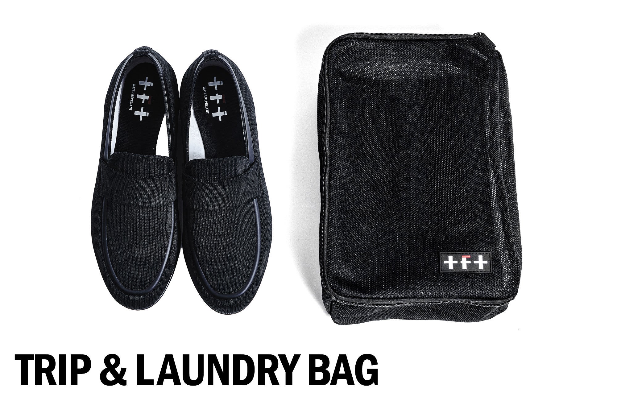 また、こちらはランドリーバッグとしてだけでなく、普段はシューズの収納や持ち運び用ケースとしても使用できるため、出張や旅行にも最適。『+F+(エフ)』 のシューズであれば洗ってもすぐ乾くので、出張先での洗濯も可能です。