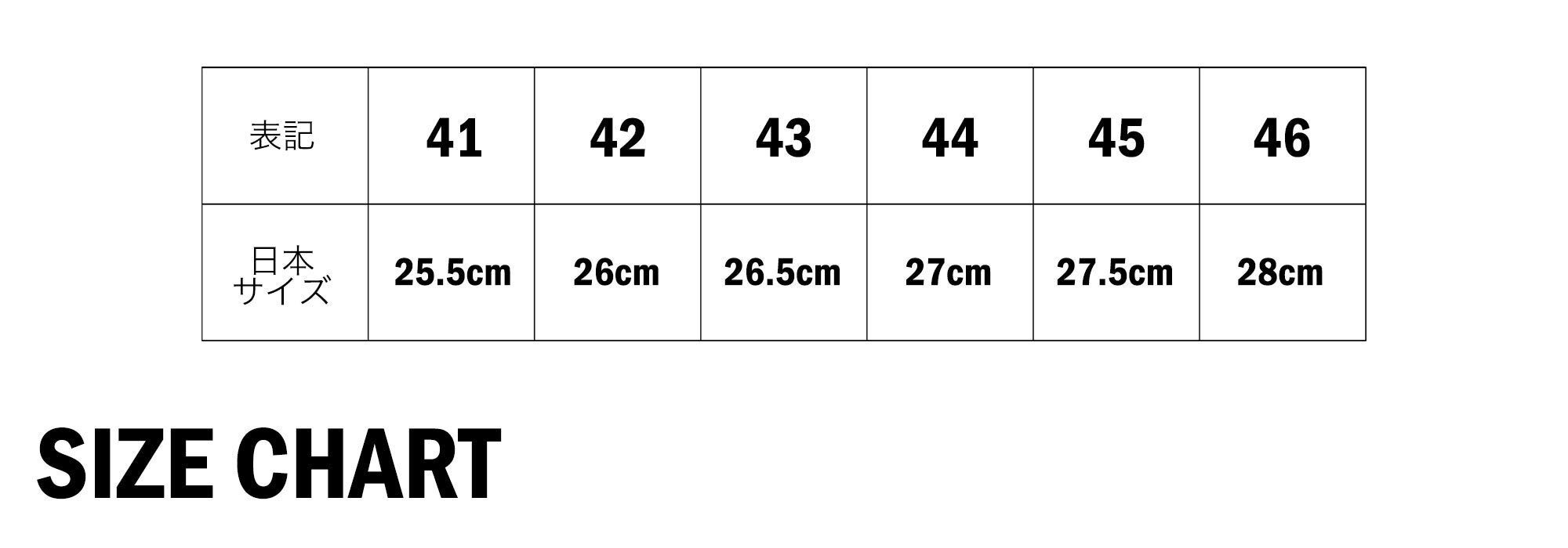 幅広・甲高の傾向がある方には、普段のサイズよりハーフサイズ大き目が目安です。
