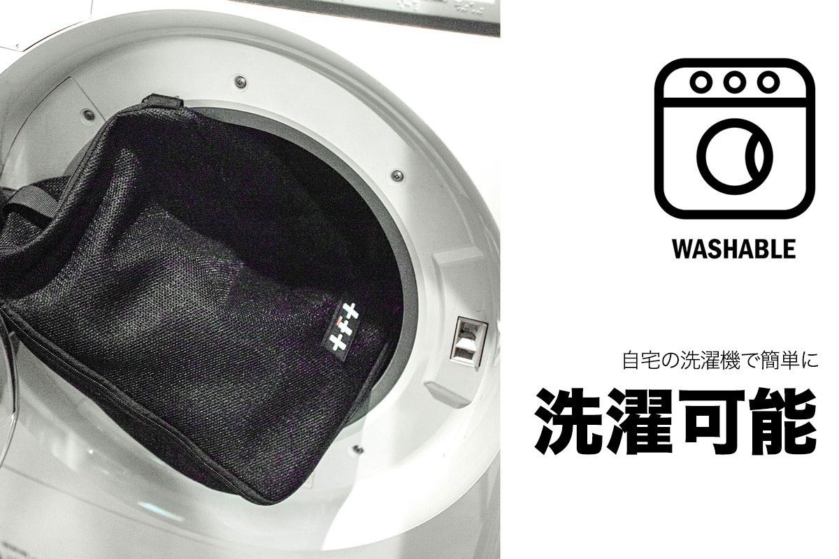 そして、本製品には洗濯する際にシューズを入れる専用ランドリーバッグが標準装備。 ご自宅の洗濯機で簡単に洗濯が可能です。