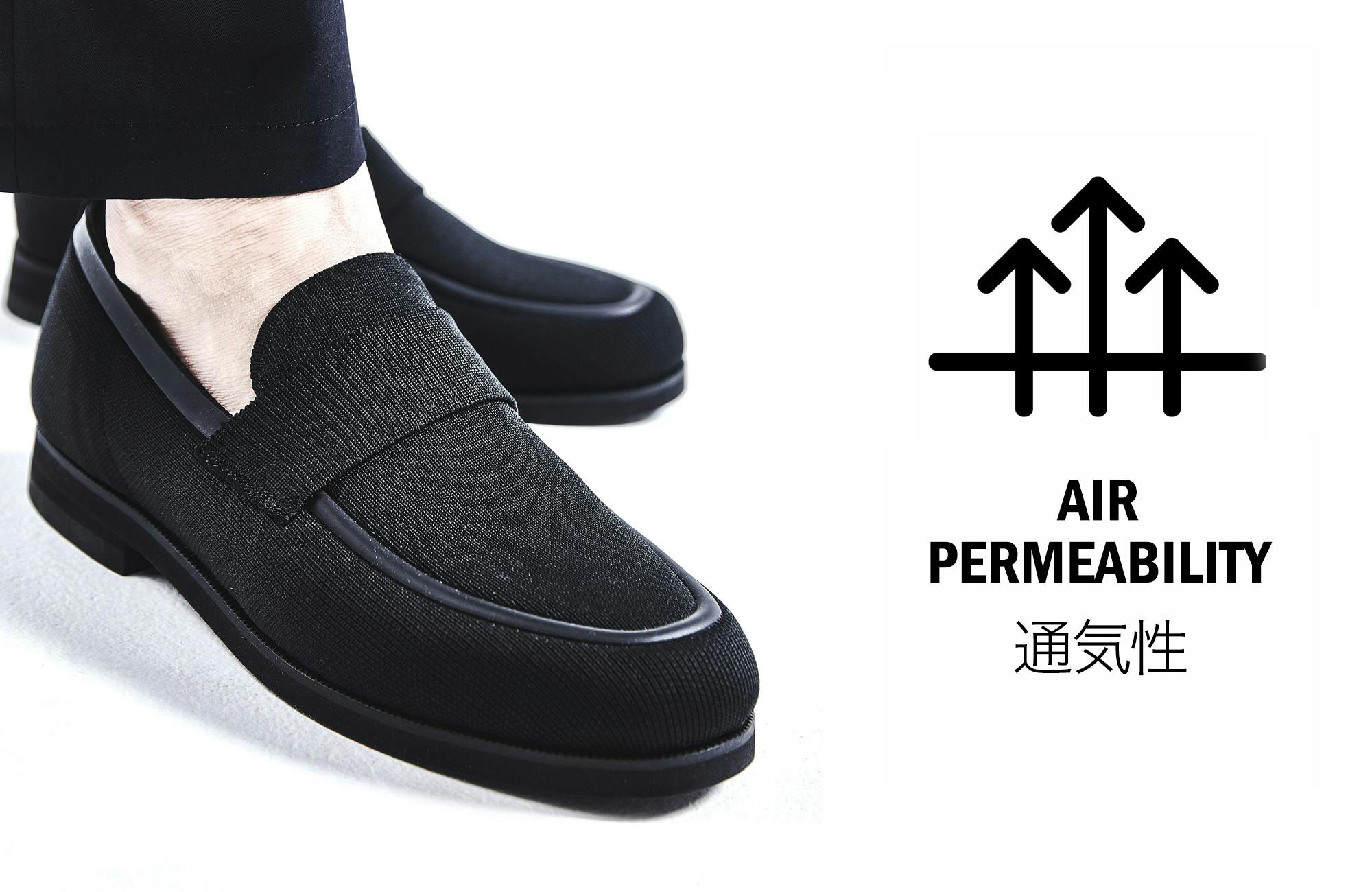 編み目を持つニット素材は通気性が抜群。シューズ内に湿気を溜め込むことなく、蒸れを防ぎ、常に快適なコンディションを保ちます。足の裏やつま先は、体の中でも汗をかきやすく、1日に両足で約200mlの汗をかくと言われています。そのケアを怠れば不衛生なだけでなく、靴そのものの寿命も縮めてしまいます。衛生的でいて、経済的でもあります。シューズにニット素材を採用することは、実に理に適った選択と言えます。