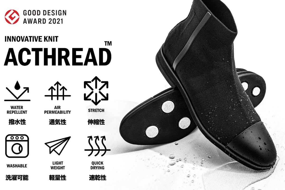 シューズタイプは異なりますが、雨に強く、ムレにくく、お手入れも簡単な独自ニット素材「アクスレッド」を実際に手に取って試着し体感いただけます!