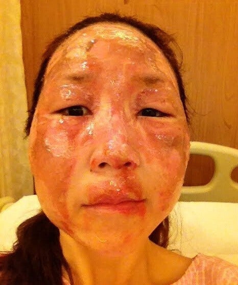 実は私、10年前に顔面と腕を大やけどしています。しかし、このことを知らない方は、顔と腕にやけどを負ったと言っても信じてくれません。衝撃的な写真で申し訳ありませんが、やけどを負ったときの写真があるのでお見せします。