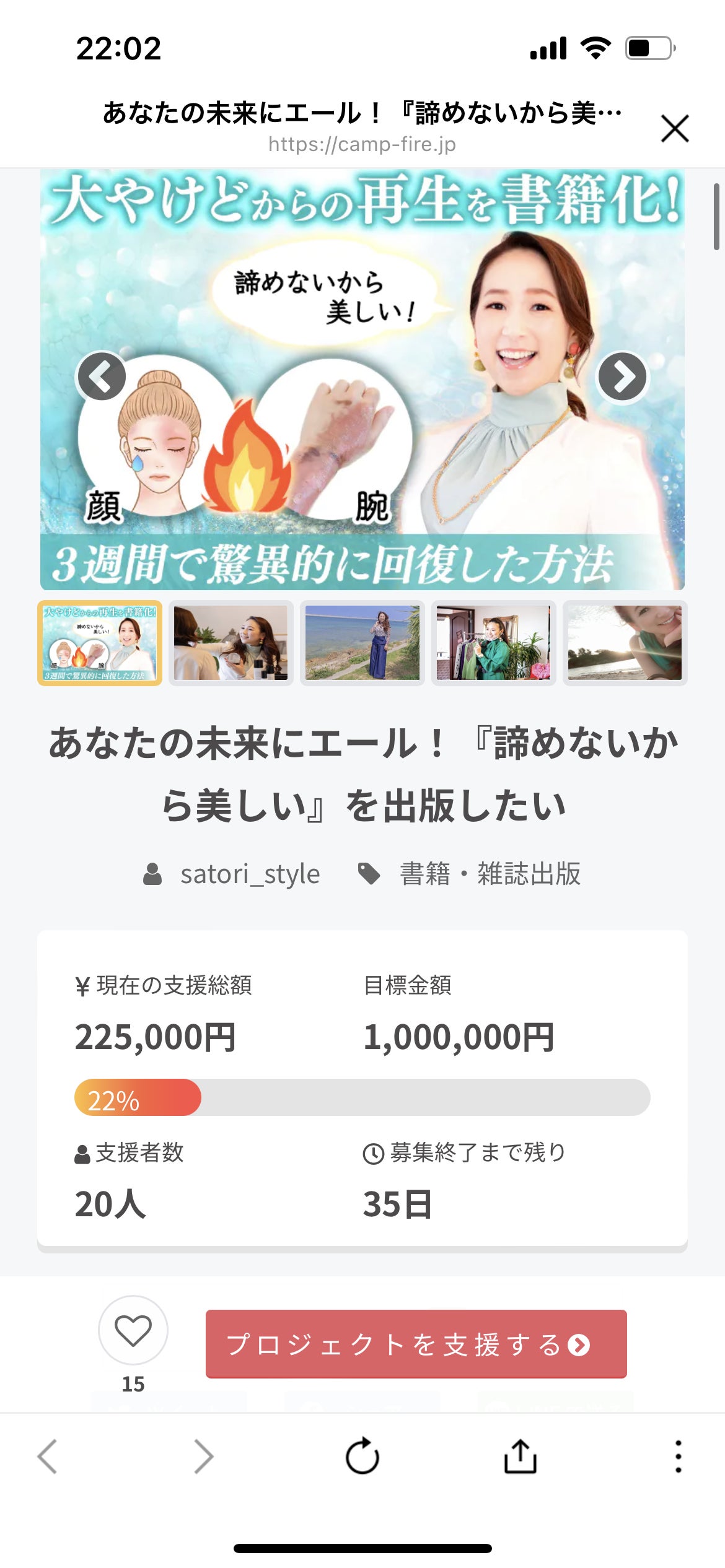 皆さま!こんばんは!!保科さとりです!この度初の試みグラントファンディングをさせていただきドキドキのスタートを切りました!そしたら、なんと!なんと!なんと!開始1時間で目標の20%達成 涙びっくり!!そして、嬉しい幸せです!!本当にありがとうございました!!活動報告もまた、随時してまいります!