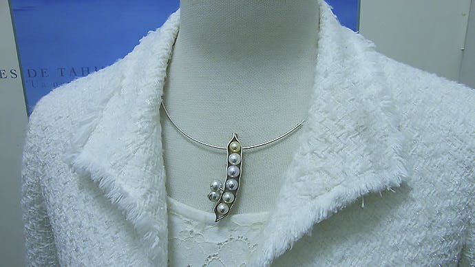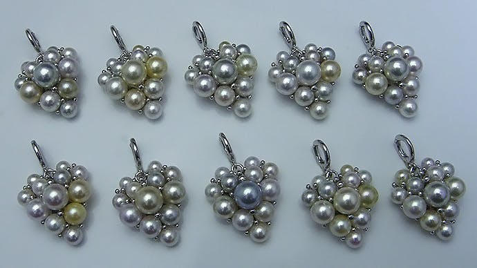 天然色のあこや真珠を使い、作ります テリの良い美しい真珠を
