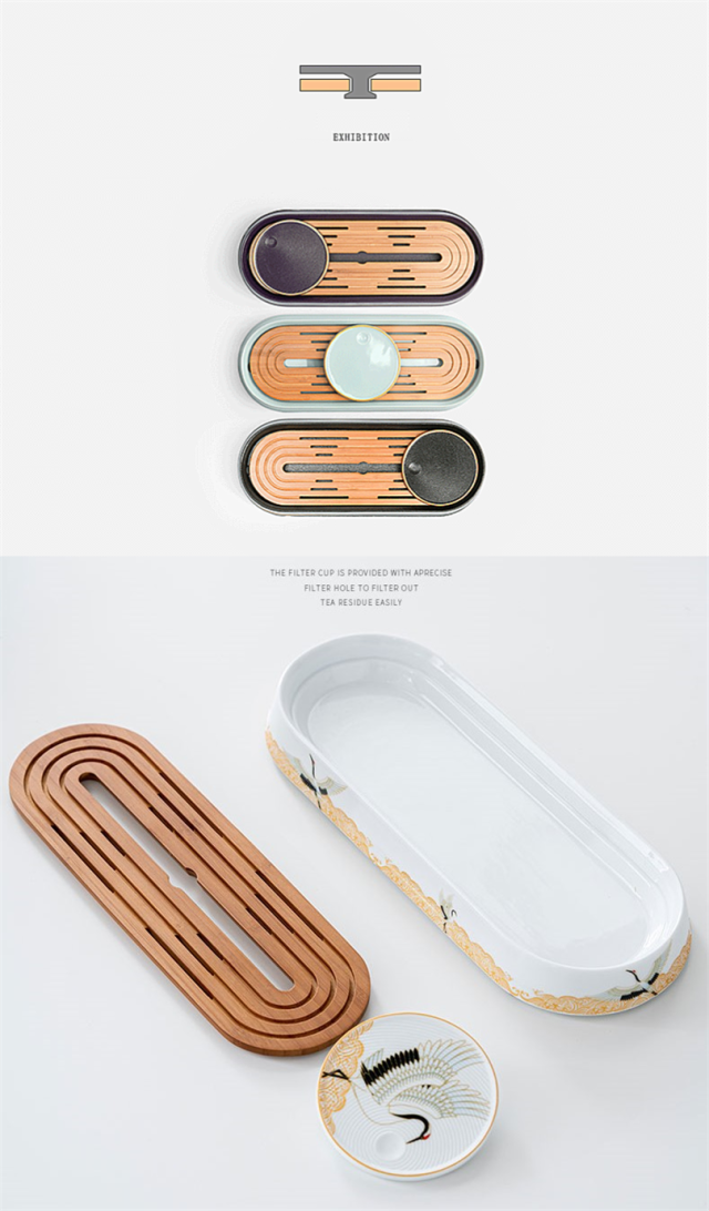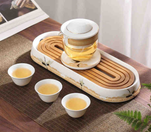 取外し可能な水収集盆地付きの竹茶トレイは4~5人のコンフスタイルのティーサービスに適しています。