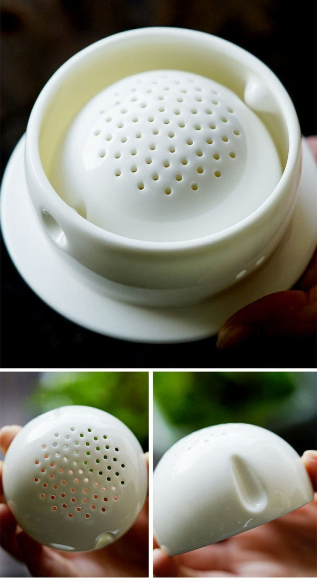 なんと一体型でスナップイン構造とタンブラー原理を利用した半球状360°回転式の茶こしが付いています。