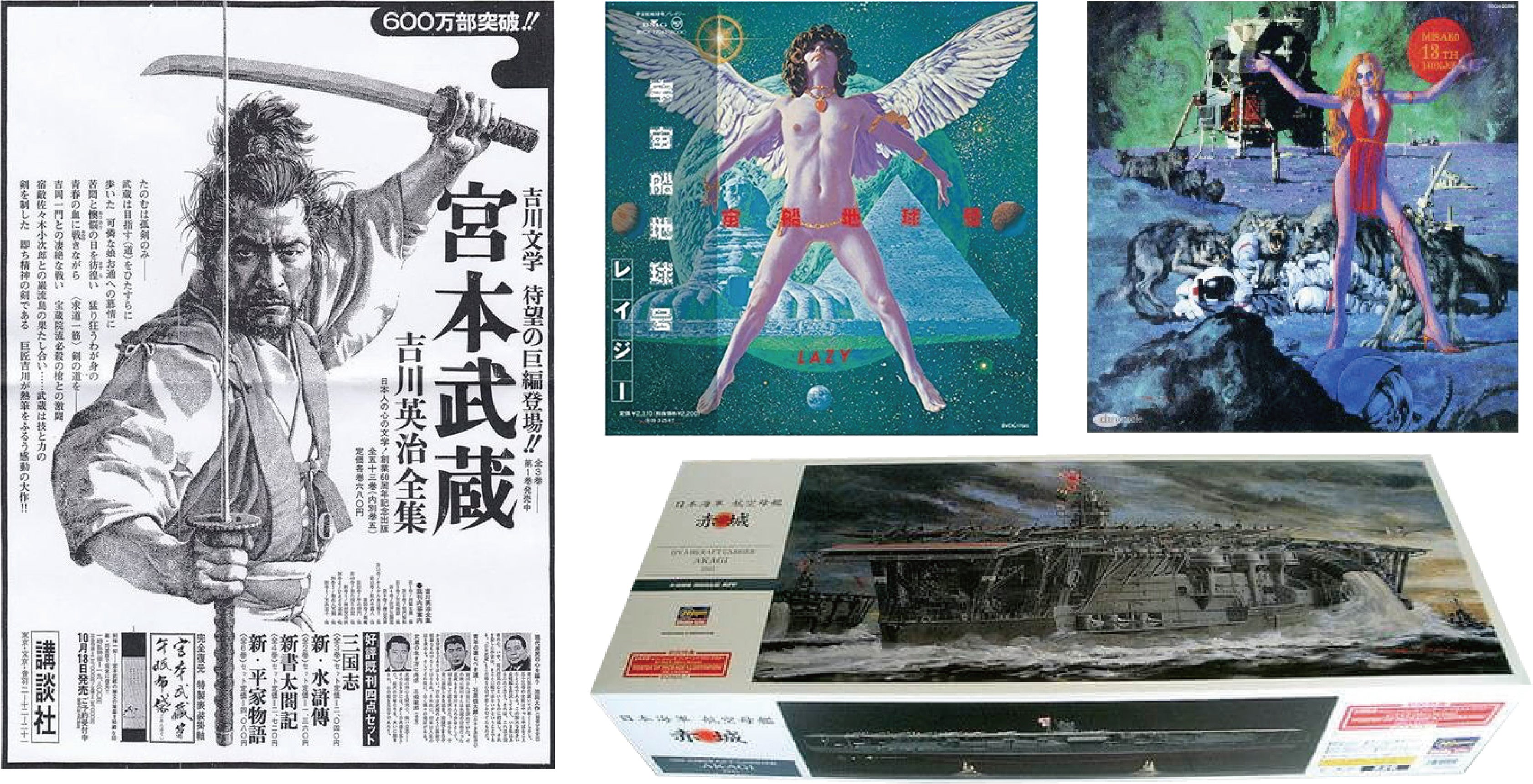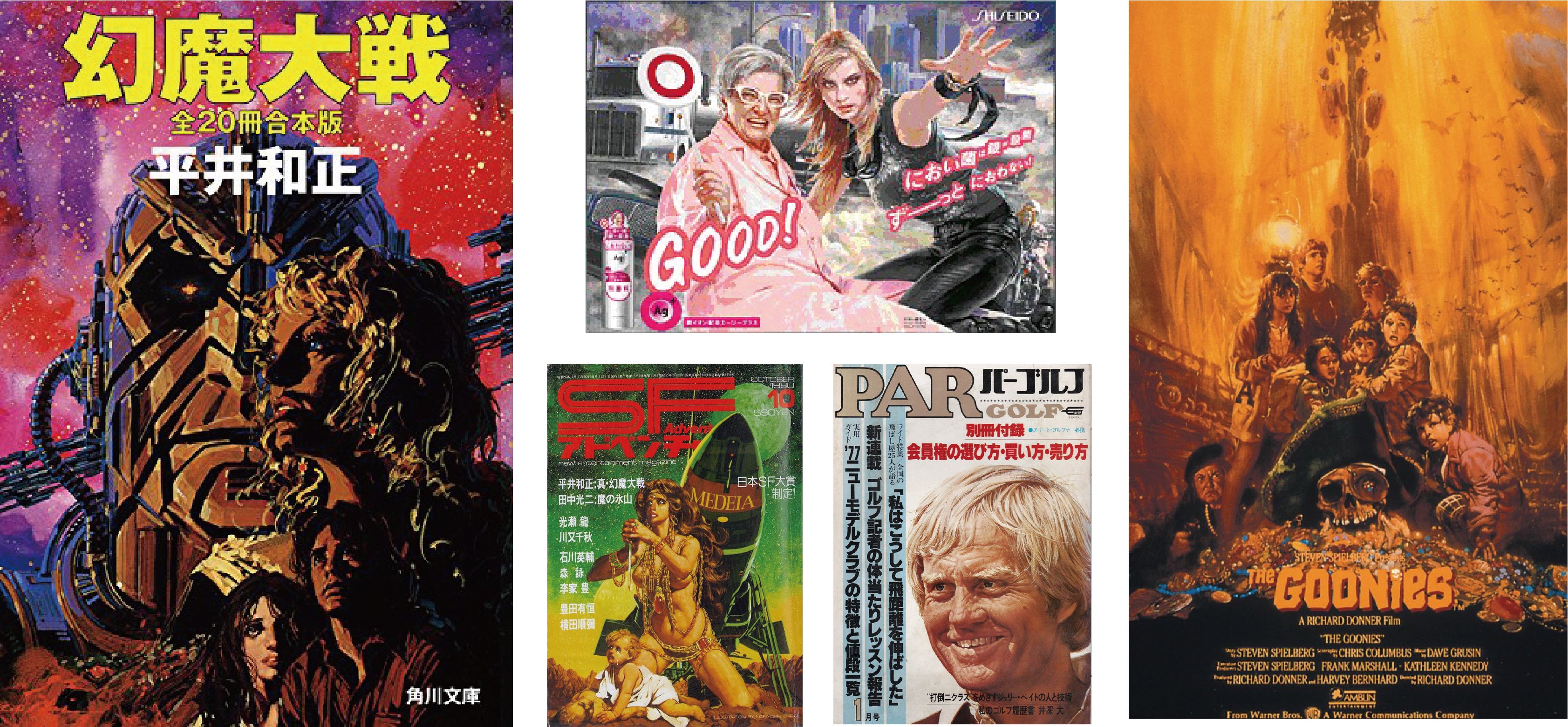更に、映画「グーニーズ」「マッドマックス」「キングコング」「ゴジラ」、吉川英治の小説、雑誌「ムー」プラモデルメーカー「HASEGAWA/赤城」など、まだまだ沢山有り過ぎて、枚挙にいとまがないです。