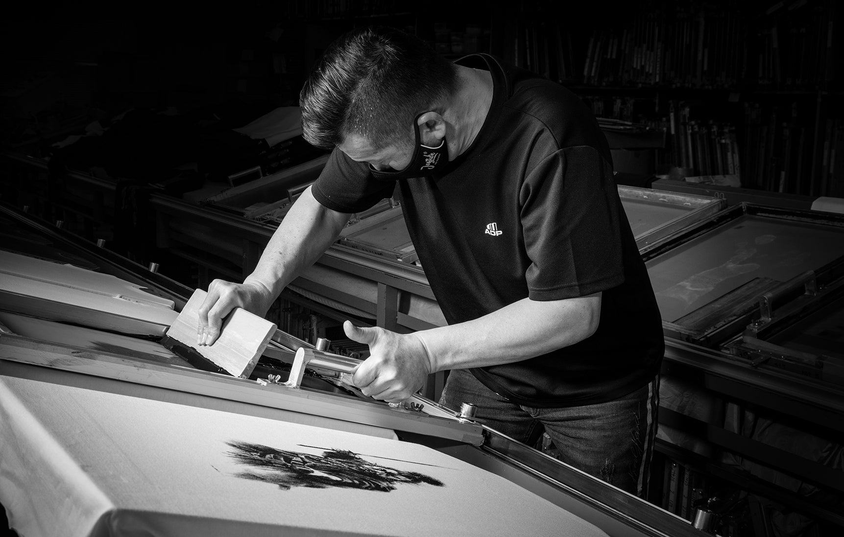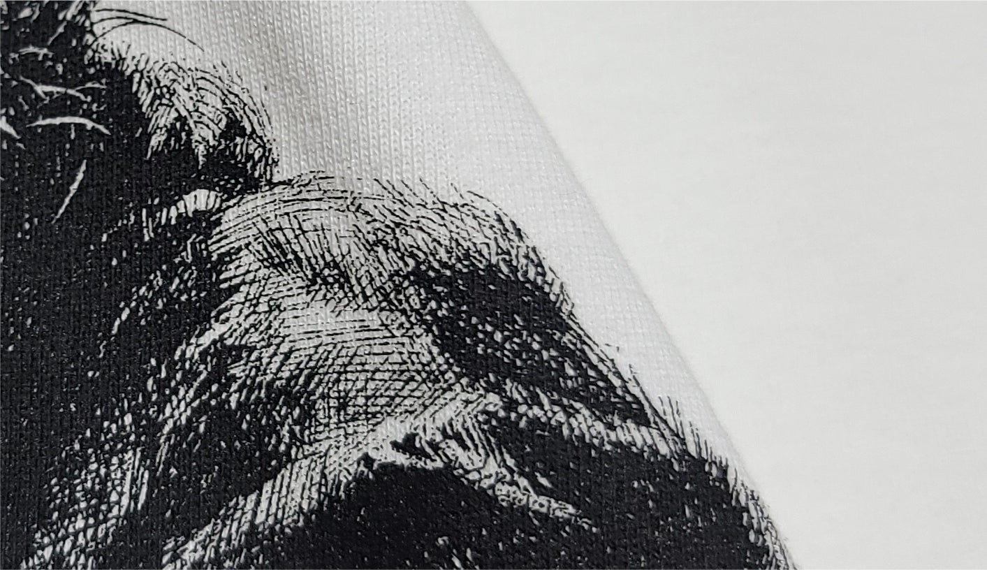 生賴範義の言葉にインスパイアされ、プリント工程において人の手が入るシルクスクリーンプリントを選択しました。原画に近いもので、プリントとしては大きいモノとなります。