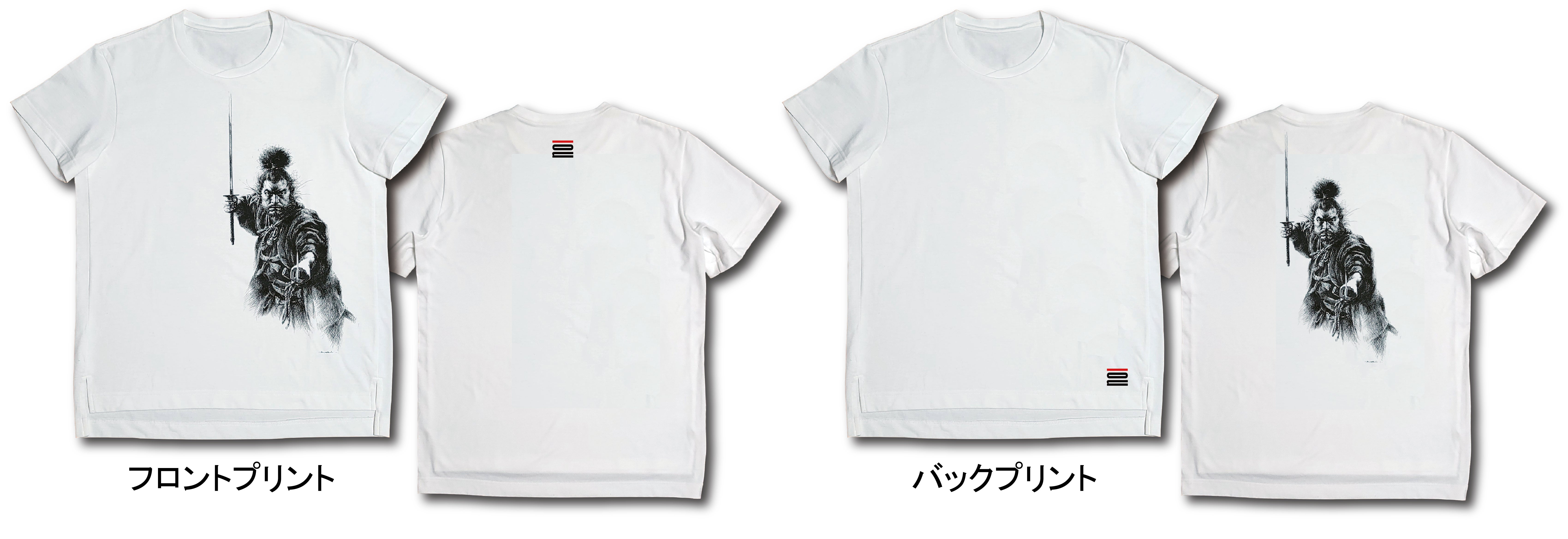 宮本武蔵のイメージから、耐久性のある天竺生地を用意。生地の目面(メヅラ)の立った生地に相反して繊細なプリントを施し、長く愛用できるTシャツに仕上げました。
