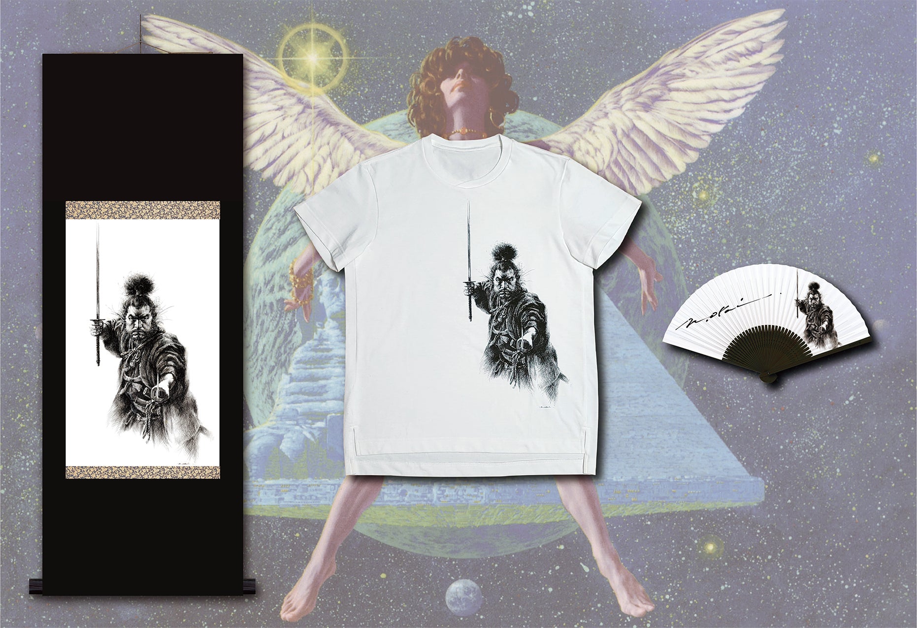 生賴範義が描いてきた数多くの絵の中でスタートするに相応しい『 絵 / 魂 』として、己の剣術と精神を磨き続けた 宮本武蔵の生き様、迷いのない二天一流の構えで挑む姿を選択。