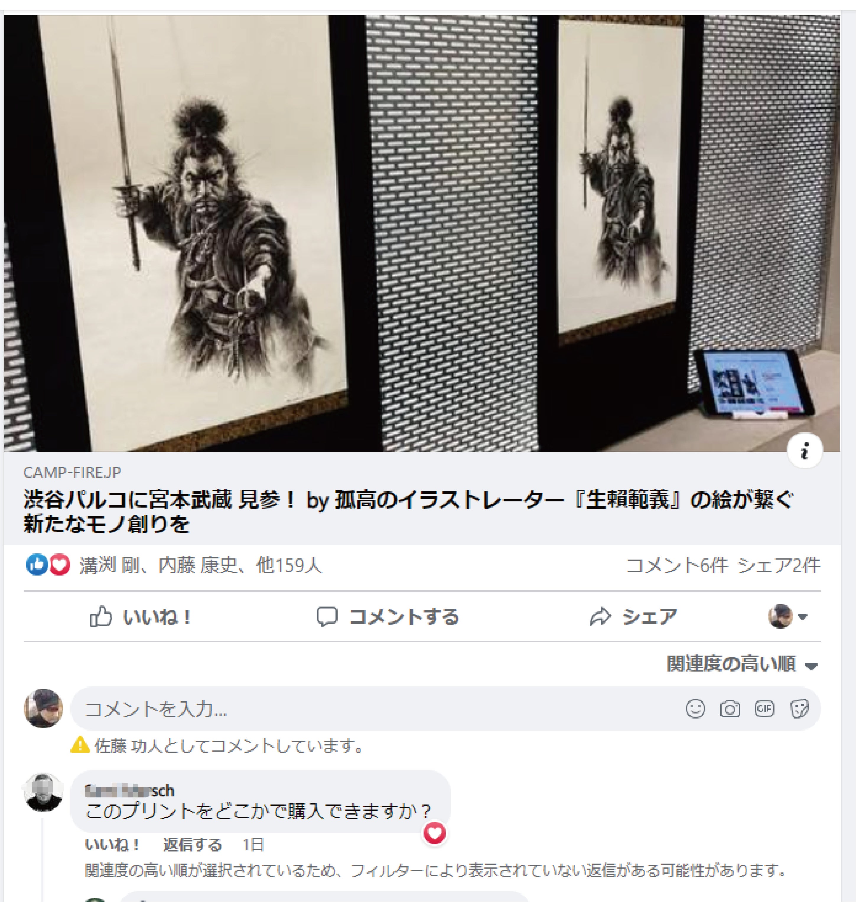 Facebookでお問い合わせがございました。