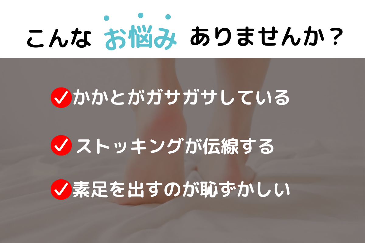 冬はもちろん、春から夏になると多くの女性から聞かれる足元の悩みの一つが”かかとのガサガサ”です。