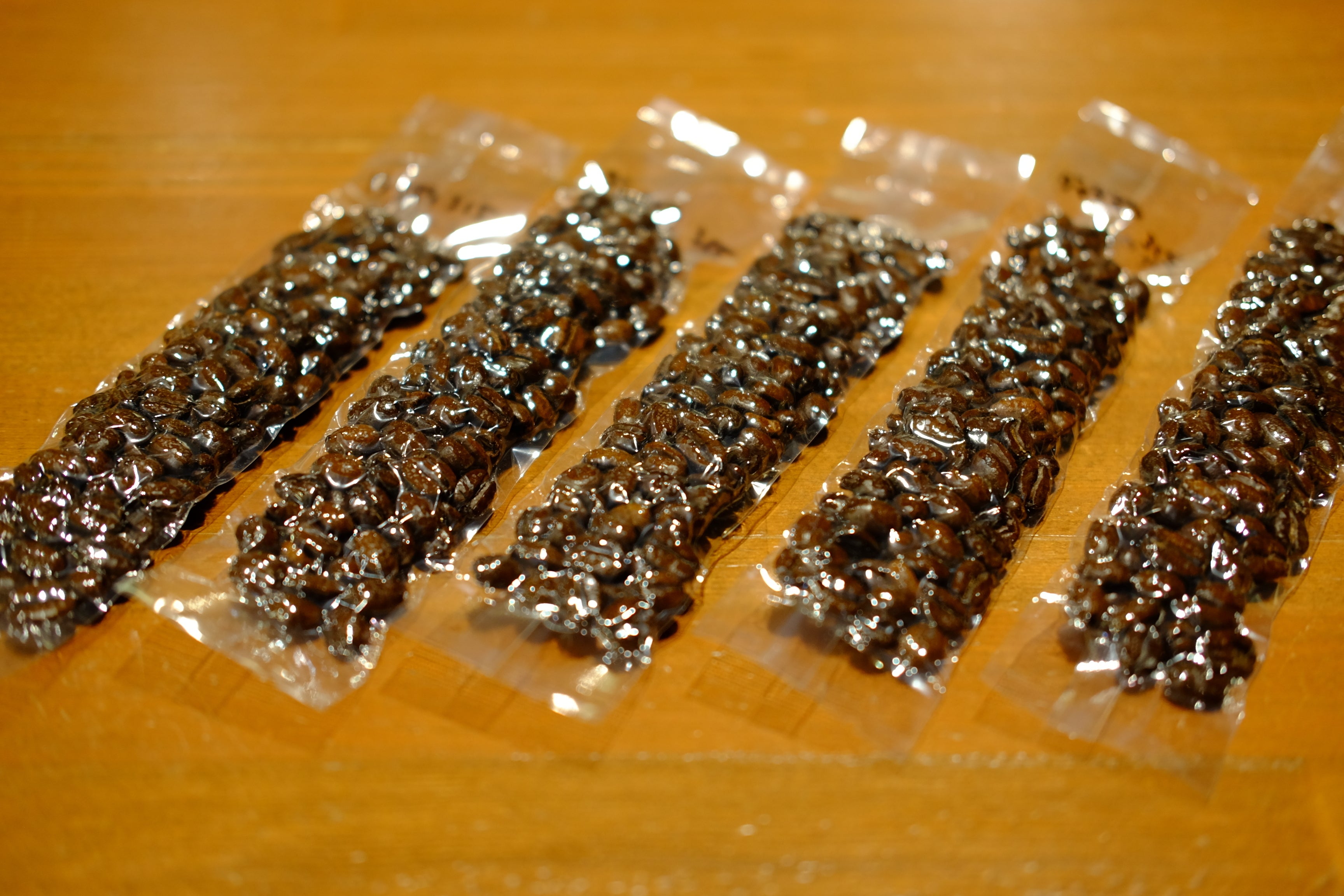 2つめ:通常の挽き売りは100グラムを最小単位にしていることが多いですが、1杯分ずつの個包装も検討しています。コーヒー1杯分(15グラム程度)の豆が個包装されていたら、その日の気分で淹れる豆を変えたり、旅行やキャンプにも携行してこだわりの1杯を淹れたり、もちろん使う豆だけを開封することになるのでストック中の豆を不用意に光と空気に触れさせることも無くせるのです。