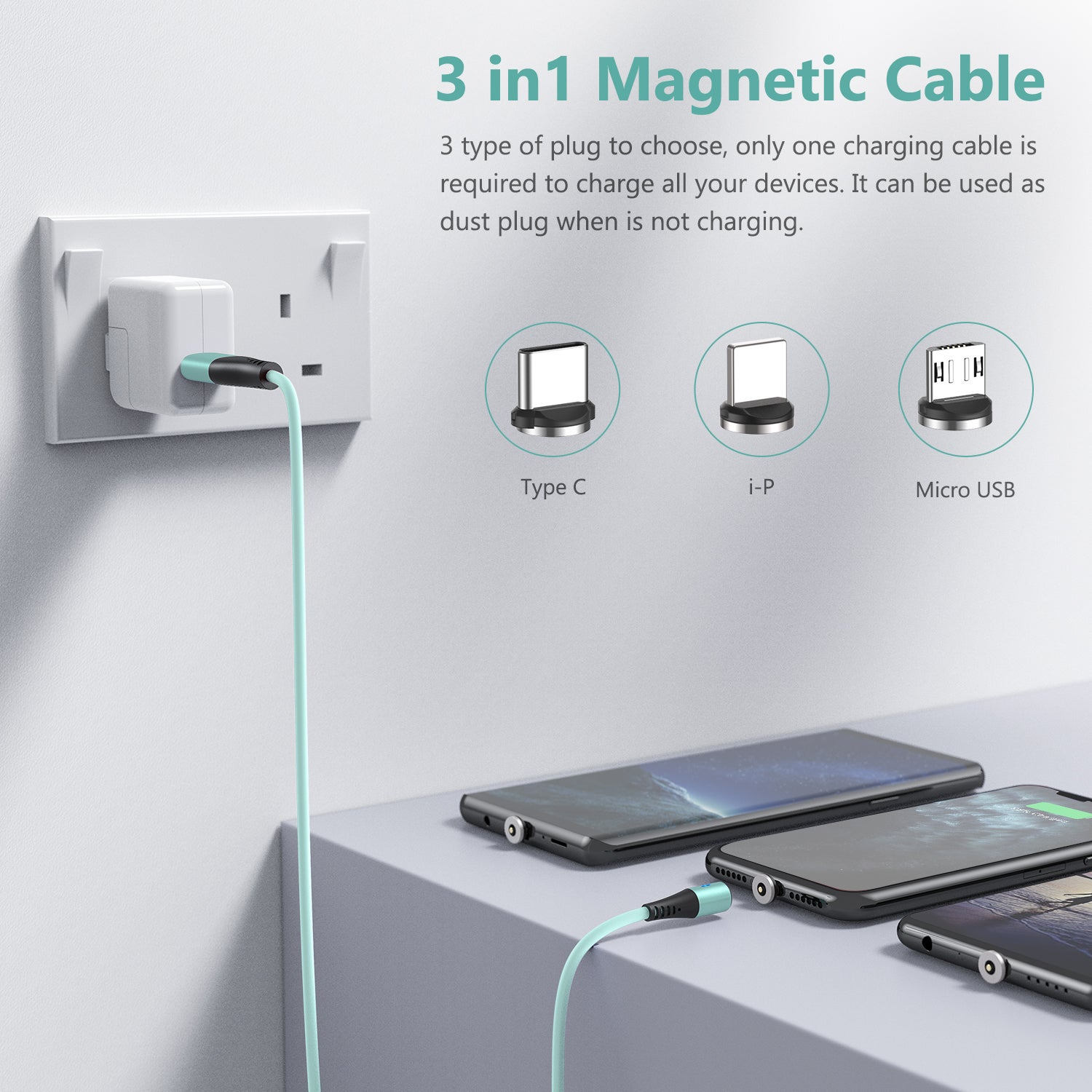 lightning,Micro ,Android Type-Cのマグネット端子がセットとなっております。